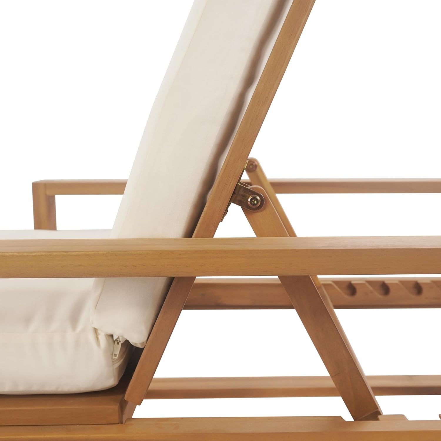 Designed for personalized comfort, the backrest of each outdoor chaise can be adjusted to five different positions, allowing you to find the perfect reclining angle. Whether you want to sit upright to read a book or lay back to sunbathe, the versatile design ensures maximum relaxation, each chaise lounge outdoor features a 3.9-inch thick cushion for exceptional support and softness.The reinforced structure and premium materials ensure that the chair remains secure and comfortable, providing peace of mind while you relax. Details Items Included:Outdoor lounge chairs ; Cushions; Pillows Number of Items Included:1/PC Number of Cushions Included:1/PC Number of Pillows Included:1/PC Overall Product Dimension:29.5 "L x 72.2 "W x (15.5 - 29.1 - 33.2 - 36.2 - 37.4)"H/PC Overall Product Weight (with cushion):48.94 LBS/PC Weight Capacity (with cushion):400 LBS/PC Seating Capacity:1/PC Material Frame: Acacia wood Upholstery: Fabric (Polyester) Filler: Foam Removable Cushions:Yes Removable Cushion Cover:Yes Number of Package:1 Assembly Required:30 min Additional Tools Required:All Tools Included