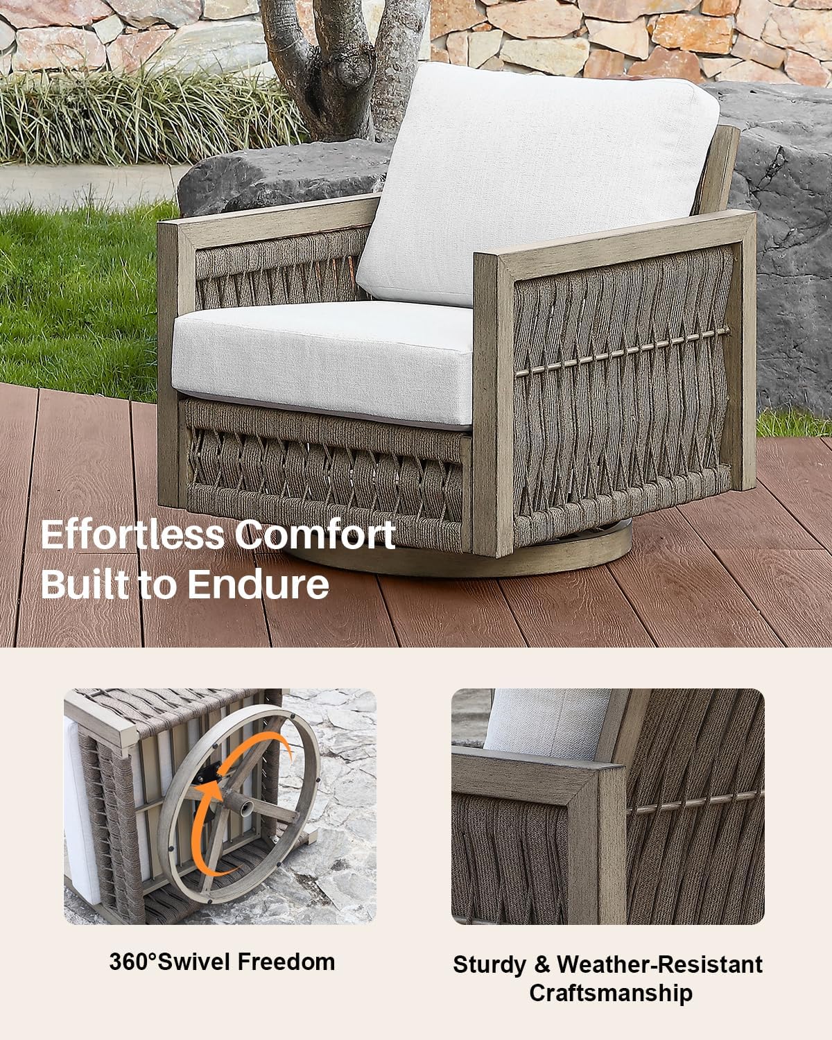 | Additional Features | Easy to Assemble, Ergonomic, Never-Rust, Rope Weave Craft, Wood Grain Texture |