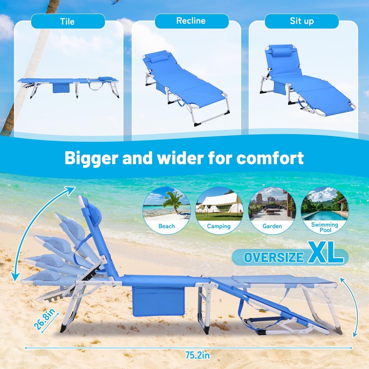 | Recommended Uses For Product | Sunbathing, entertainment leisure |