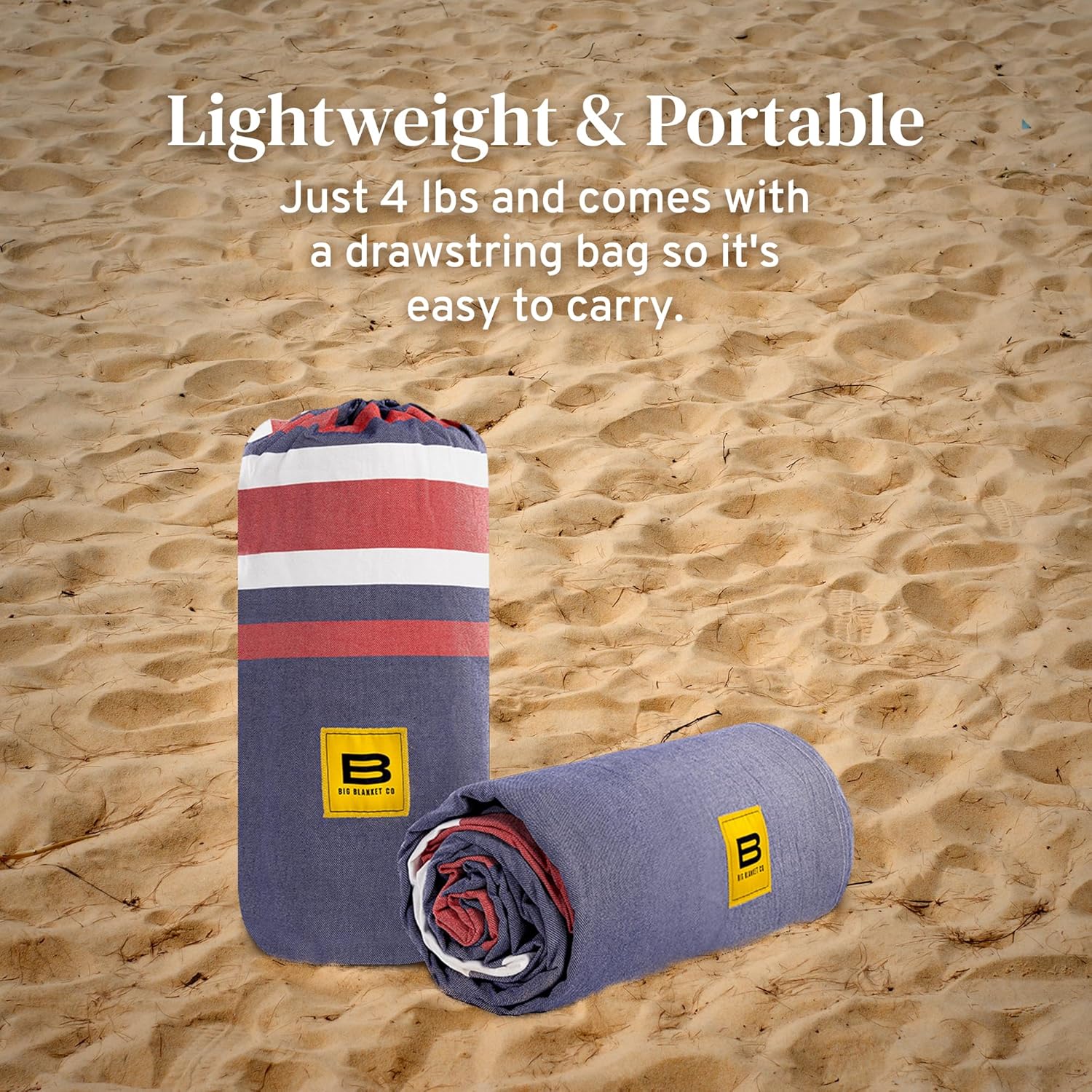 The Big Beachy by Big Blanket Co is the ultimate oversized beach blanket. At 10' x 10', it's big enough for the whole crew plus all your gear. Sand-resistant fabric shakes clean instantly. Machine washable to handle sunscreen, sand, and everything else the beach throws at it. Compact and portable with included carry strap.