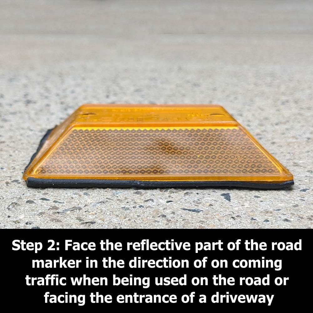 Our commercial grade heavy-duty DOT approved peel-n-stick yellow reflective road markers are a great tool for locating driveways, roadways and other hard to see items in the dark. The 4 inch by 4 inch reflector is constructed of a hard acrylic for maximum strength and pre-coated with a sticky adhesive butyl pad for easy bonding. The highly visible internal reflector is protected by a rib and fish hook design. Simply peel off the paper backing and place firmly on asphalt or concrete. Designed for any highway and all types vehicles.Install horizontally on any non-soil clean asphalt or concrete surface onlyDo not install vertically or uprightNo adhesive necessaryReflectors are not battery operated or use solar powerHow To Install - Clean surface. Peel off white paper and stick in place. Face the reflective part of the road marker in the direction of oncoming traffic when being used on the road or facing the entrance of a driveway. Drive over it slowly with a vehicle to create a proper seal.How To Remove Road Marker - In the event your marker becomes damaged, just use a flat shovel and pry upward. Unlike road makers that use binding epoxy or construction glue, our markers are removable without damaging the asphalt or concrete.IMPORTANT - Product Will Not Stay In Place On Gravel, Dirt, Mud, Or Any Other Type Of Loose Road Surface.FireHoseDirect is a firefighter owned and operated company since 2011.