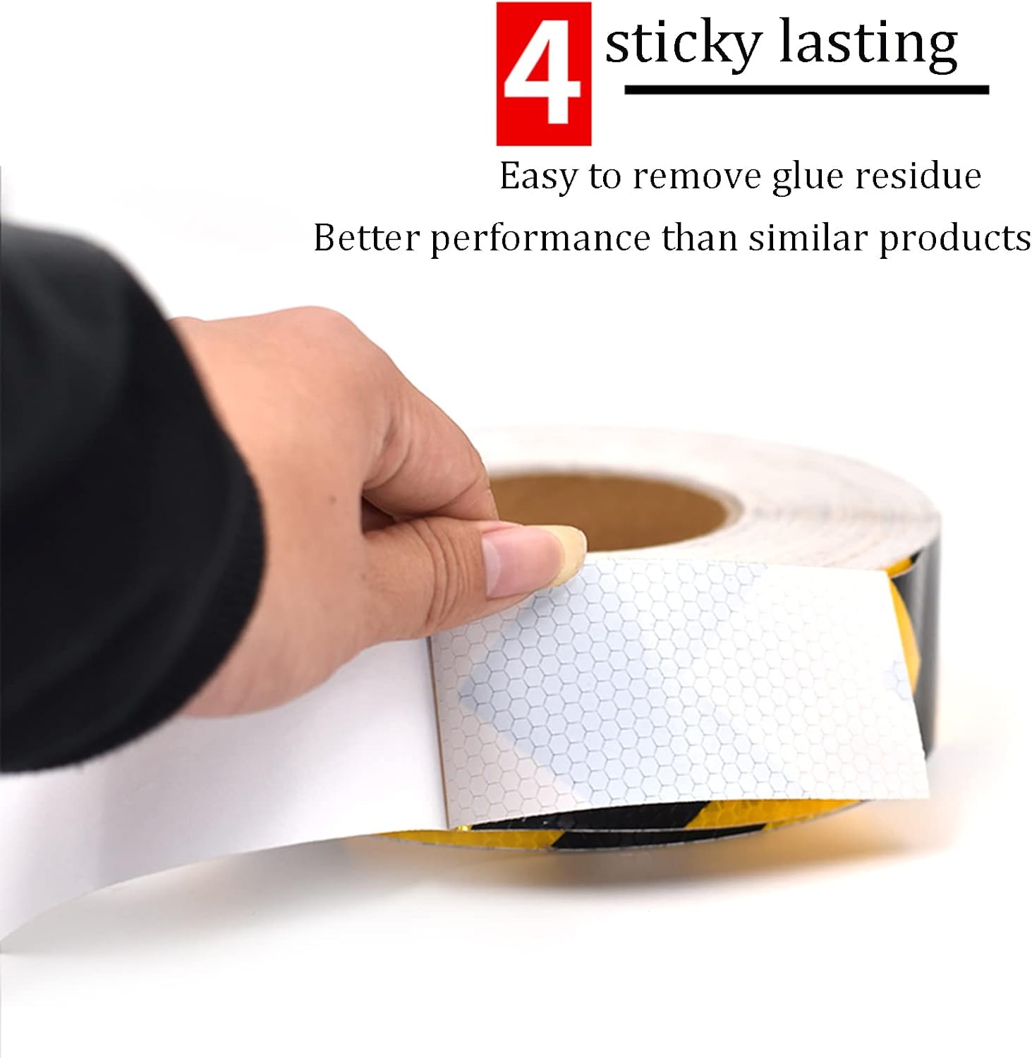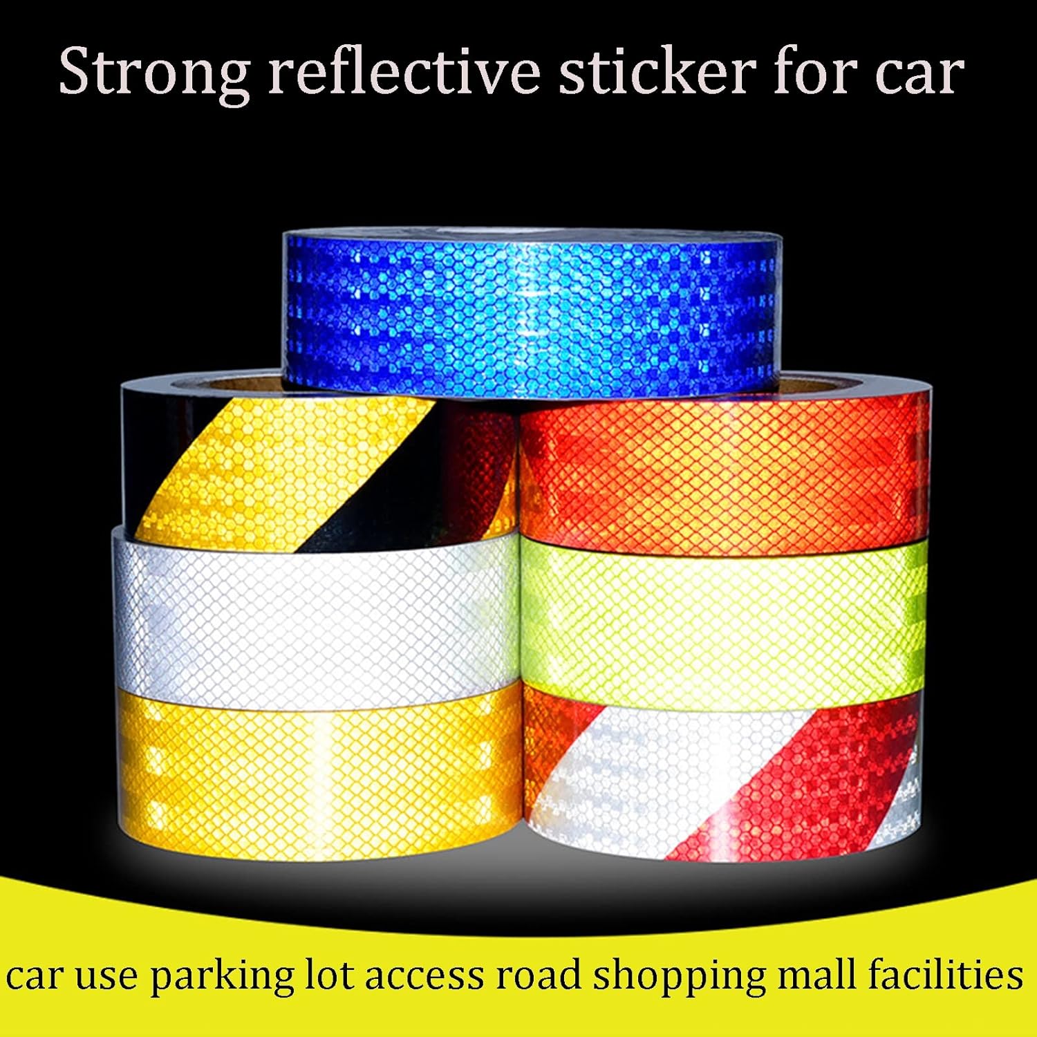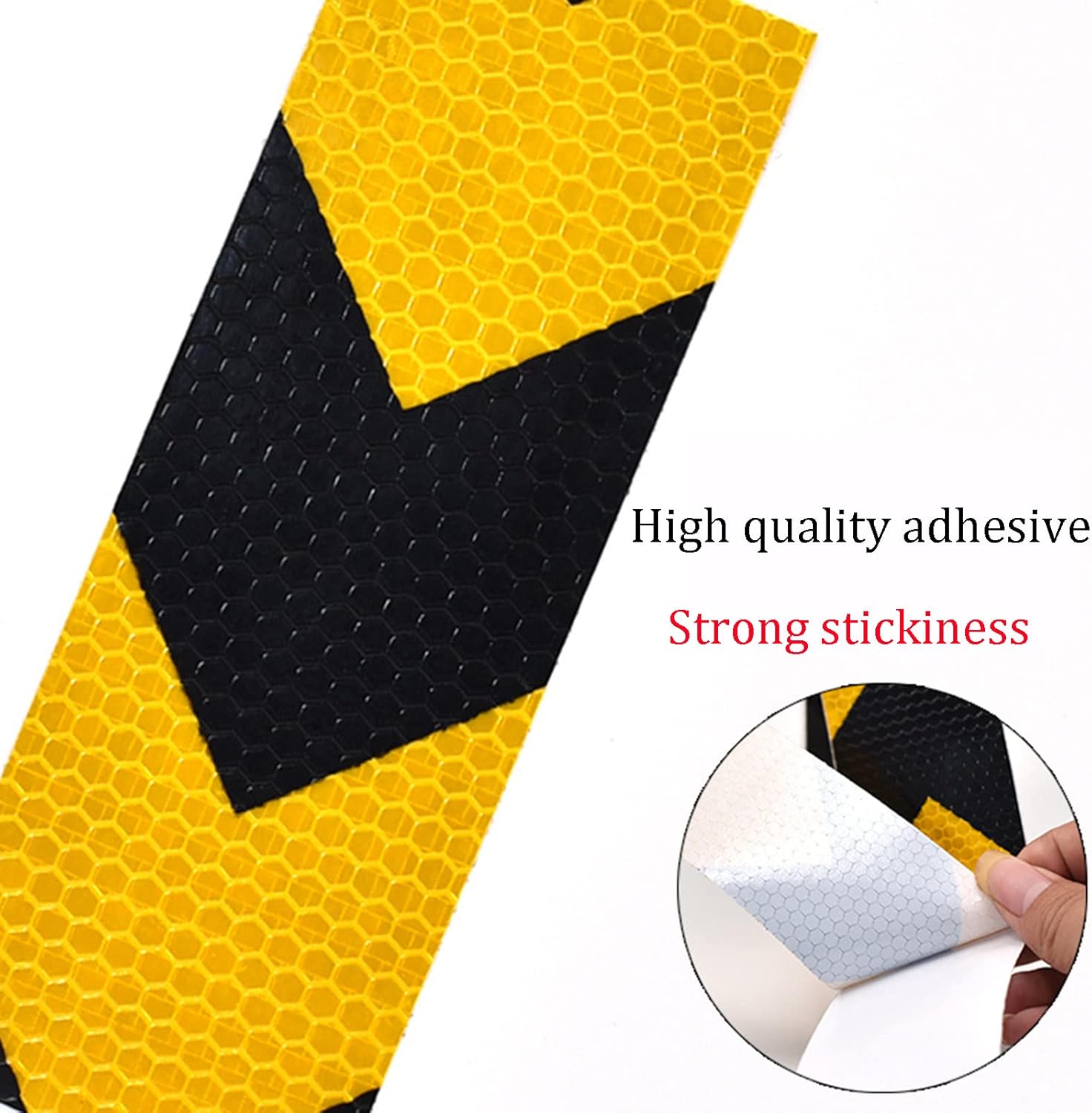 Reflective surface will not fade even under constant exposure to sun or on varying weather conditions. And the weather surface allows the adhesive to stay strong even under heavy rain.Product size:Width: 5cm/2in Length: 25m/82ftInstallation steps:Step 1: Use scissors to cut out the length you need.Step 2: Use a rag to clean the surface so that there are no or water on the surface.Step 3: Paste the tape on the surface with your hand or tool.Product features:» Attention-getting brightness improves temporary traffic control » Weather resistance, keep good reflection in the bad weather, like the raining day, foggy or dark condition» , proof, easy to erase.» Tear Growth Resistance, Scratch resistance, water/oil ResistanceProduct use:widely used in transportation, construction engineering and agricultural production tools, such as trucks, trailers, ractor,Container,crane,stage, barricade,garage,corridor,letter boxes, fences, Road signs, warning posts, anti-collision posts, guardrails, bicycles, motorcycles, trolleys, trailers, etc