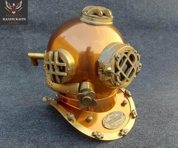 This Vintage Nautical Sea Diving Diver's Helmet will bring the essence of the sea into your house. With its elaborate craftsmanship and antique brass finish, this piece is expertly crafted to imitate vintage deep-sea diving helmets, making it the ideal accent to any décor with a maritime theme. This helmet is a distinctive item that speaks to the history and adventure of the sea, regardless of whether you're a diving aficionado or just adore the ocean. It can be used as a decorative focal point for your office or home thanks to its adaptable design. Its classic appeal makes it the perfect present for history buffs, divers, and lovers of the sea.