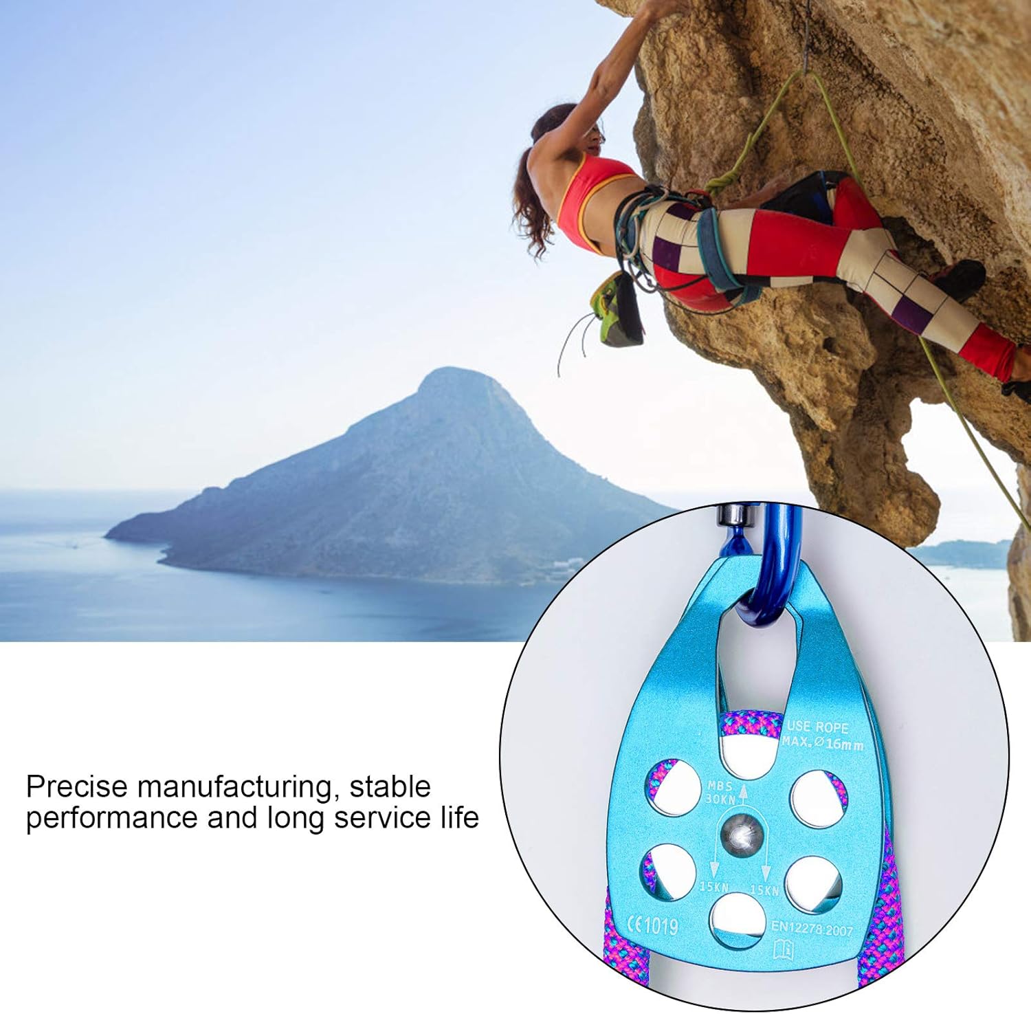 Features:Exquisite Craftsmanship: Our pulleys boast a concave design with a polished treatment on the cover, showcasing exquisite workmanship. Not only does this enhance their appearance, but it also contributes to their durability and overall performance.Durable and Efficient: Our aluminium single wheel pulley is built to withstand the demands of outdoor activities like mountaineering and rock climbing. Its high-quality construction ensures long-lasting durability and efficient performance.Trusted Quality: We are committed to providing products of superior quality and performance. Our aluminium single wheel pulley is thoroughly tested and trusted by outdoor enthusiasts worldwide, ensuring a reliable and enjoyable climbing experience.Specification:Condition: Brand NewItem Type: Single Sheave PulleyMaterial: 7075 Aviation AluminumColor: BlueProduct Length: Approx. 123mm/4.8inProduct Width: Approx. 82mm/3.2inHanging Hole Width: Approx. 24mm/0.9inWeight: Approx. 252.0g/8.9ozStatic Tension: 30KNRolling Tension: 15KNScope of Application: Mountaineering, downhill, expansion, cavern, rock climbing, survival, high-altitude operations, etc.Package List:1 x Single Sheave Pulley