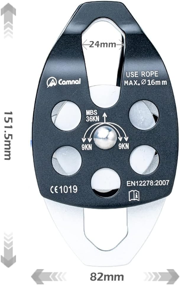 Double Pulley with Swinging plate Product Description: Color: Red,Blue,Gray,Black Breaking Strength: 36kN/7936lbs Material: 7075 Aviation aluminum Size: Length: 82mm/3.2inch; Height :151.5mm/5.96inch Aperture: 24mm/0.9inch Weight: about 429g Max. diameter of rope: 16mm Built-in Ball Bearing Certification: CE1019 EN12278: 2007 Package includes : 1 pcs pulley Scope of application: Mountaineering, Downhill, Expand, Caving, Climbing, Rescue, Etc. Made in China