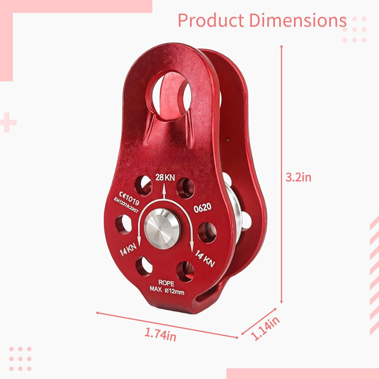 Color: Red Material: Aluminum Alloy Size: 3.2 * 1.7 * 1.1 inches Package Includes: 2 * Fixed Plate Pulley Note: - Please refer to the measurement. Tiny measuring error is allowable in normal range. - There might be a little color difference due to the monitor, camera or other factors, please refer to the physical item.