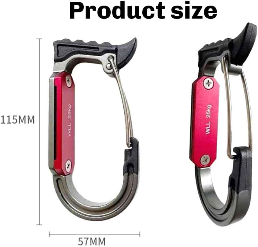 Different batches may have different intermediate product model labels, which does not affectColour:As ShownMaterial:Aluminum AlloyPackage Contents:1 x Outdoor Rock Climbing Harness HookOnly the above package content, other products are not included.Note: Light reflection and different displays may cause the color of the item in the picture a little different from the real thing. The measurement allowed error is +/- 1-3cm.