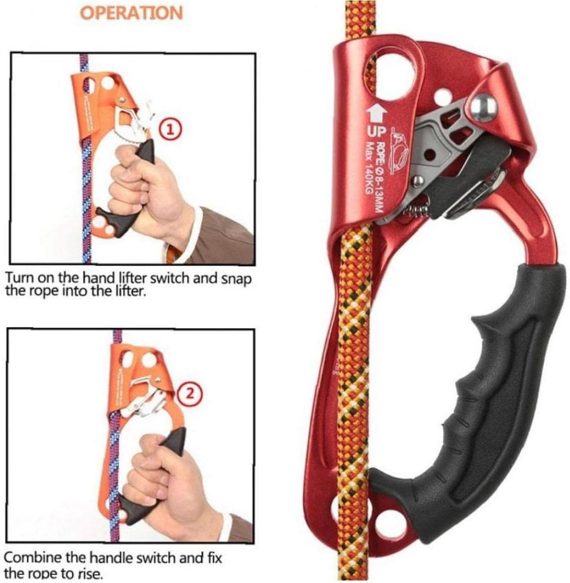 Type: lock buckleMaterial: Hot-forged aluminum- alloyProduct Color: Right-hand color RedSize: 22cm long, 8.6cm wide, 1cm thickWeight: 0.25KGApplicable rope directly: 8-12mmPacking1pc*lock buckle