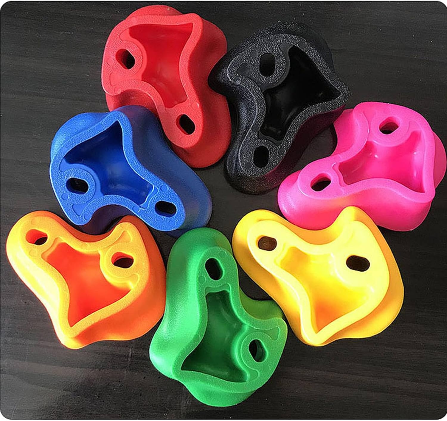 Item Type: Climbing HoldsMaterial: Thickened PEColor: Pink, Green, Brown, Purple, Yellow, Product Size: Approx. 10x12.5cm / 3.9x4.9in Package List:6 x Climbing Rocks1 x Hex Wrench12 x Screws