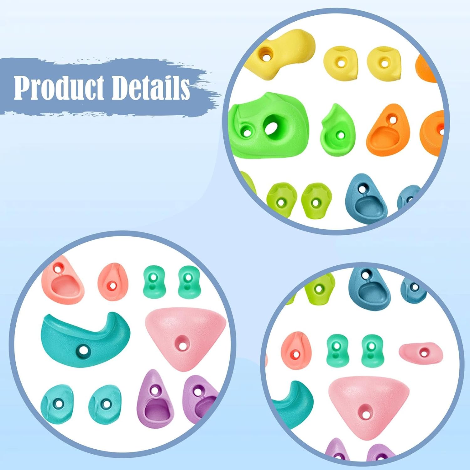 Specification:- Material: PP, Carbon FiberSize Chart:Screw: 5cm (1.97 inch)Climbing Holds: 7cm-14.5cm (2.76inch-5.71inch)Package Includes:25 Climbing HoldsNote:Please allow slight errors of 1-2cm (0.39-0.79inch) due to manual measurement.