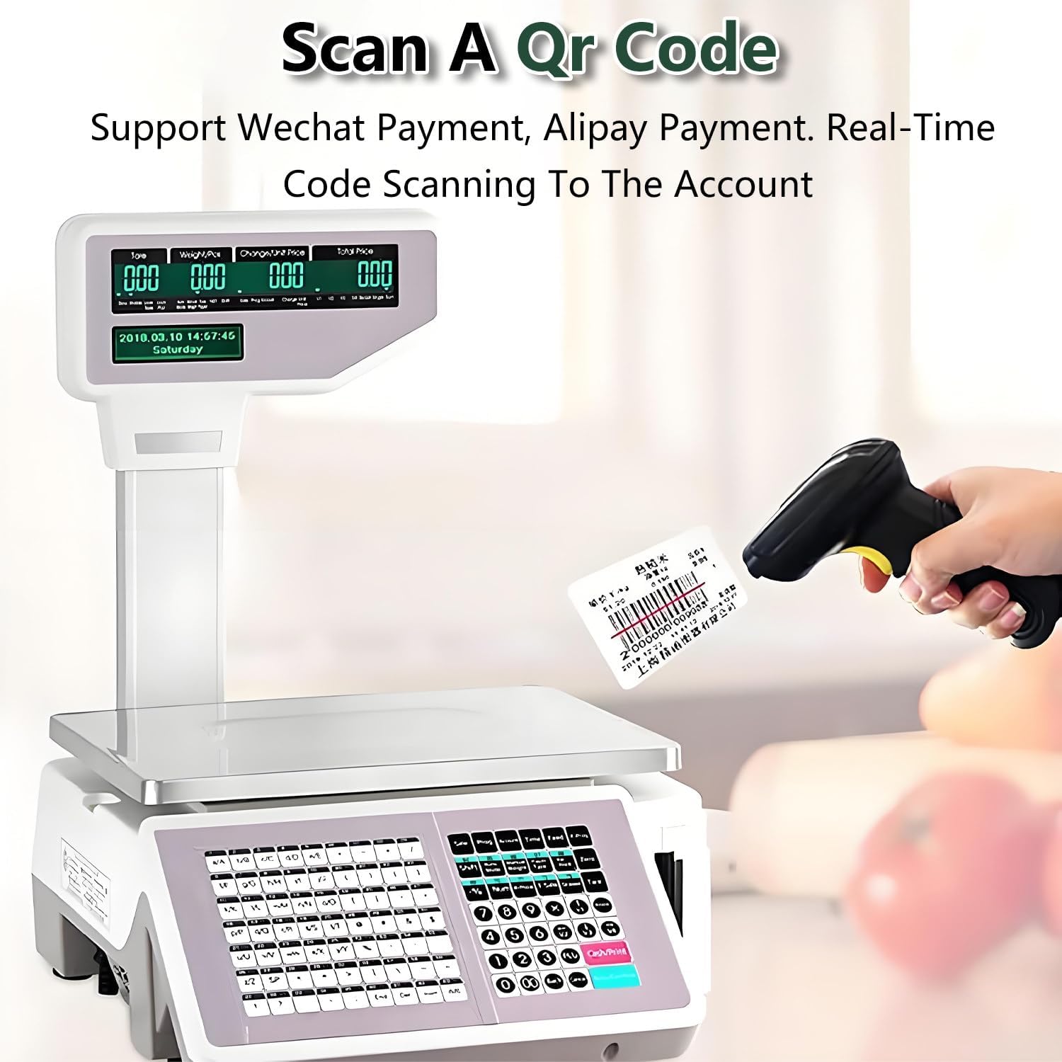 This scale can be used not only for weighing, but also for setting prices, printing small bills, and making change. The double-sided display screen makes shopping more convenient and comfortable. Real-time display of values and high definition LCD screen allows for a very clear display of weighing data. The scale can be used for weighing in various stores, such as supermarkets, fruit stores, snack bars, etc. ? Features ? Multiple Interfaces: There are multiple interfaces on the side of the scale so that different external expansion devices can be connected. It is more expandable and more versatile. ? Dual Printing Modes: This scale can print barcode labels and cashier tickets at the same time. And the printed text is clear and crisp. ? HD Display: This display is a high-definition LCD screen, which shows the weighing data very clearly. ? Anti-slip Foot Pads: It can ensure that the items are placed more stable and do not move easily. ? Specifications Color: White Print Mode: Print Small Ticket/Adhesive Label Display: Double-sided Display Voltage: 110-220V Max. Weighing Capacity: 30kg/66.14 lbs Net Weight: 9kg/19.84 lbs Min. weighing: 0.2kg/0.44lbs Accuracy: 10g/0.02 lbs Size: 38 x 42 x 50cm/14.96 x 16.54 x 16.69" ? Package included 1*Label Printing Scale 1*Power Cable 1 Set*Shortcut Stickers 1*Software Disk 1 Set*English Manuals All Accessories for Assembly ? Note 1.Please note that the thermosensitive paper for receipts is not included in the package. 2.Please note that the app for editing products can be searched and downloaded on the app store. 3.If you have any questions, you can send us an email and we will reply