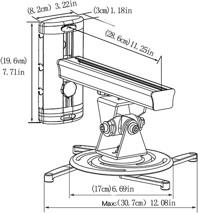 The stand enables you to use your projector or laptop for daily entertainment, meetings, presentations, or even as a camping projector stand.Product name: projector mounting bracket/projector bracket/wall projectorProduct material: aluminum alloyThe pitch angle can be rotated by about 80 degrees, and it can be rotated by about 80 degrees by rotating it left and right.Rotate 360 degrees horizontally. The height can be adjusted back and forth, 7.40 inches up and down.The size requires the distance between the projector holes to be 12.08 inches.Product weight: 22 poundsApplicable scenarios: very suitable for live demonstrations, homes, travel, classrooms, offices, trade exhibition venues, etc.Purchase items:Except for the projector mounting bracket/projector bracket product shown in the main image, other items are for display only and do not include other itemsDue to different lights, monitors and personal colors, there will be color differences between the actual product and the photo, please refer to the actual color, please understand.Because it is manual measurement, there may be some small errors, please use the actual product as the standard, please understand.Welcome your feedback and sharing, we provide you with better products and services, if you want to buy more quantity, please contact us by email, I am glad to serve you!