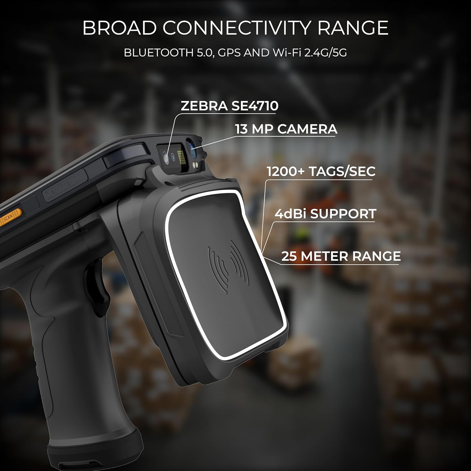 Chainway C72 RFID Wireless Android Pistol-Grip Scanner: UHF RFID + Barcode (All-in-One). The Chainway C72 is a powerful, all-in-one RFID and barcode scanning handheld built for high-speed inventory, warehousing, and industrial environments. Featuring the Impinj E710 UHF RFID engine and a high-performance 2D/1D/QR barcode scanner, the C72 lets you read RFID tags and barcodes with a single rugged device: no add-ons or Bluetooth sleds required. Running Android 13 with future OS support up to Android 18, the C72 RFID is designed for long-term deployment and enterprise stability. Its ergonomic pistol-grip, long-range RFID performance, and ultra-rugged construction make it ideal for fast, accurate inventory counts, item locating, receiving, and fulfillment workflows. powered by a massive all-day battery, delivering extended runtime for long shifts without constant recharging. Designed for nonstop warehouse and inventory operations, it keeps teams productive from start to finish. With robust connectivity options including Wi-Fi, Bluetooth, GPS easily integrate into a wide variety of enterprise systems and workflows. Whether syncing data, pairing peripherals, tracking location, or enabling secure exchanges, it offers the flexibility and reliability modern operations demand.