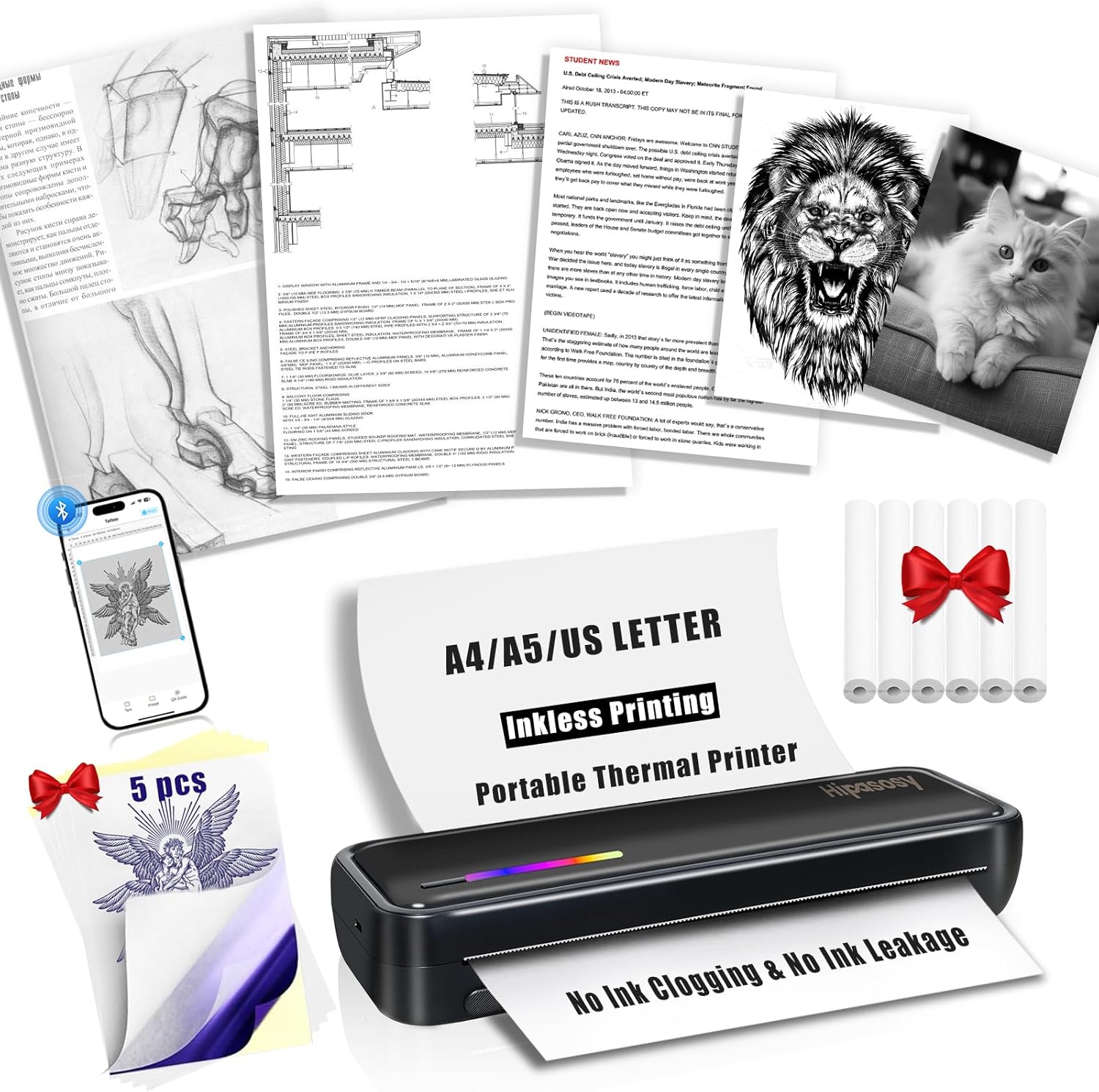 | Color | White with 6Rolls Thermal Paper |