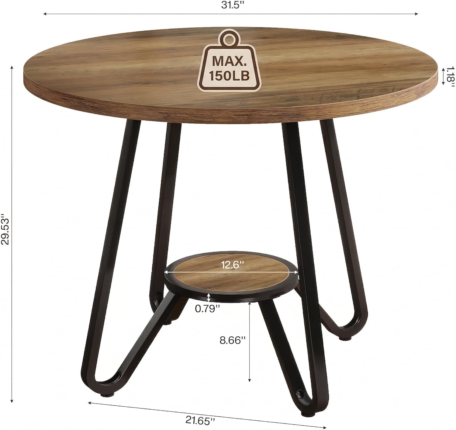 | Size | 31.5" W x 31.5" D x 29.5" H |