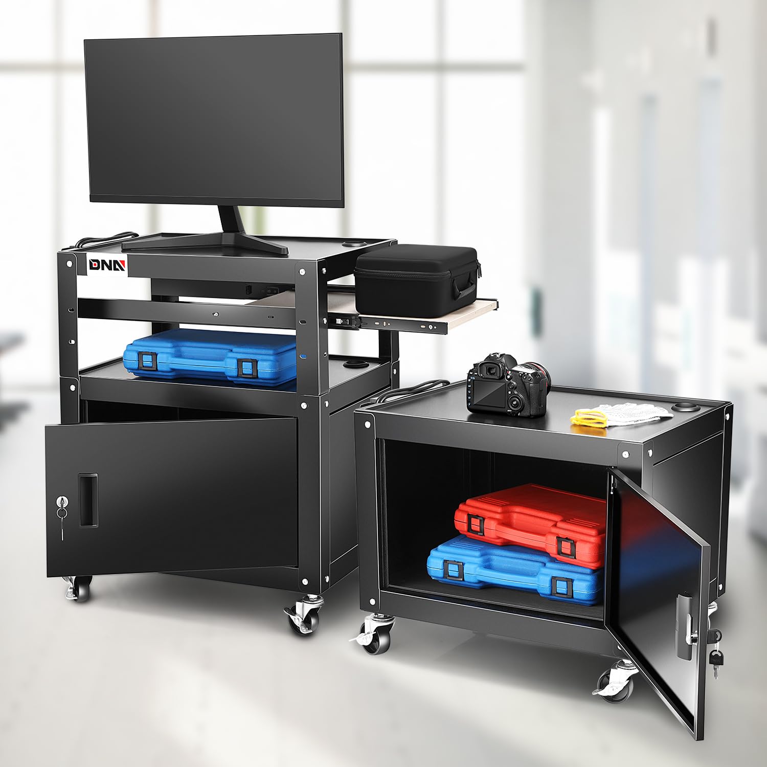 | Additional Features | Adjustable Height, Keyboard Tray, Locking Cabinet, Power Strip, Swivel Casters |