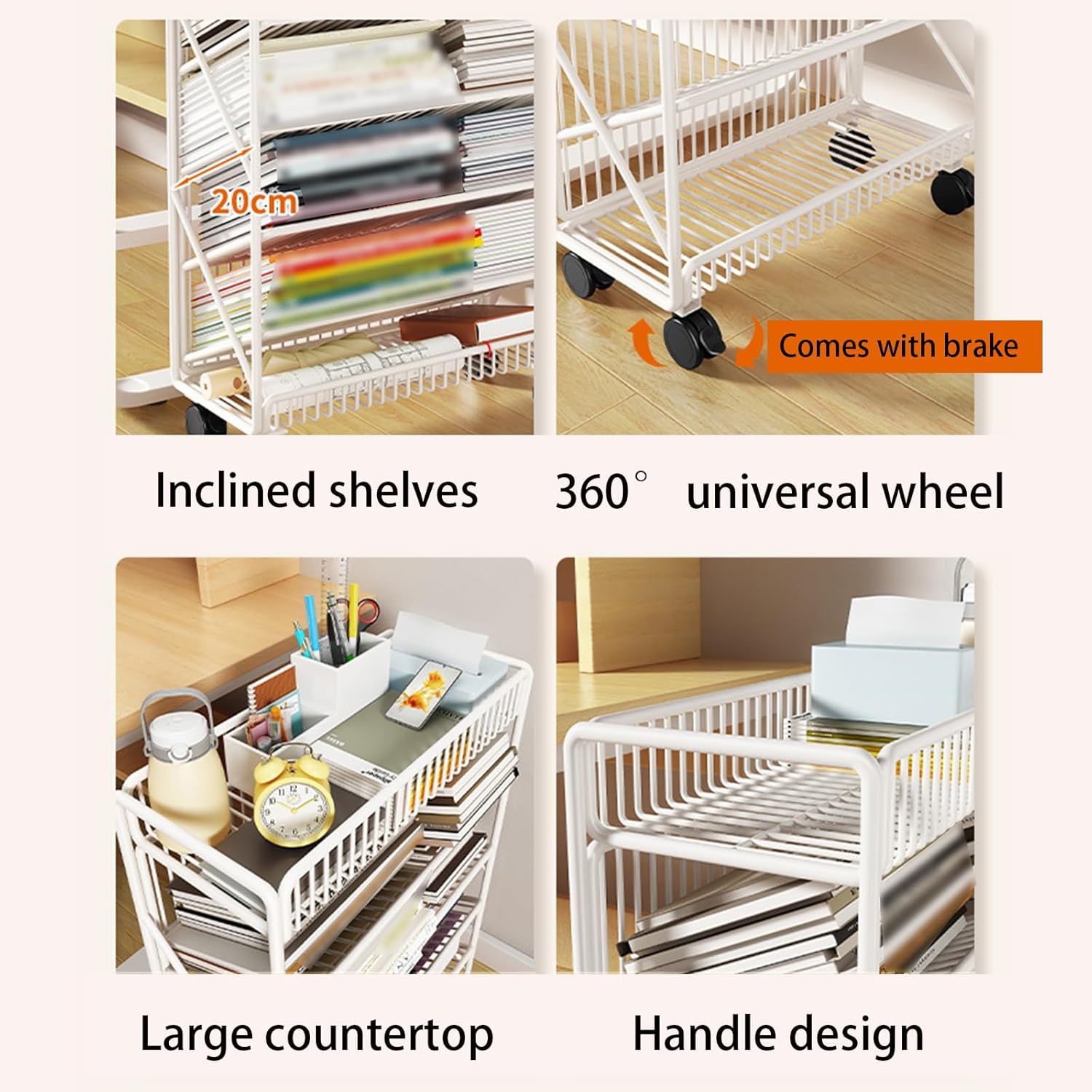 Constructed from thickened iron material, this bookshelf is exceptionally robust. It won't easily deform, even under substantial loads. This ensures that it remains a steadfast and reliable storage unit for years to come. Whether you're a book lover, a student, or someone who appreciates a well-organized workspace, this bookshelf can handle your storage needs with ease.Product name: Mobile bookshelfSpecification: 65*41*17cmMaterial: MetalColours: WhitePackage Included:1* Mobile bookshelfPlease note:1. While we display colors as accurately as possible, due to differences in computer monitors, colors may vary.2. Due to manual measurement, there may be an error of 1-3 cm in the product size.