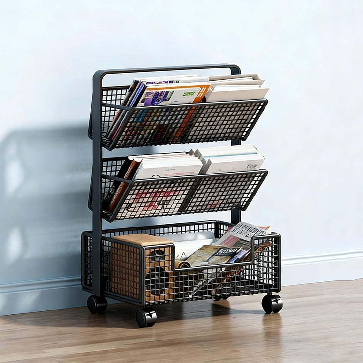 This rolling library cart features a 2/3/4-tier design with large capacity, perfect for storing books, files, and organizing office supplies, kitchenware, and more, keeping your space neat and tidy. It's equipped with silent, wear-resistant casters that allow for smooth 360° movement without damaging floors, and includes built-in brakes. Made of wrought iron, it's sturdy, durable, waterproof, and easy to clean. The angled shelves ensure items are placed securely. It's versatile and can be used in a variety of settings as different types of furniture.Product name: Rolling Library Book CartColor: Black, White,Material: Carbon steelSize:32*23*35/50/65cm(12.6*9.06*13.78/19.69/25.59in)Tiers: 2/3/4Shape: RectangularFeatures: Portable, Easy to move, Space-SavingStyle: ModernInstallation method: Floor-standingIndoor Outdoor Usage: Indoor OutdoorApplicable scope: Suitable for living rooms, bedrooms, studies, offices, libraries, dormitories, classrooms, etc.It can be used as a bookshelf, entryway shoe rack, snack rack, bedside table, flower stand, sofa corner table, storage shelf, etcIt can store books, documents, magazines, CDs, stationery, shoes, etc.Package:1* Movable Bookshelf Organizer Rack