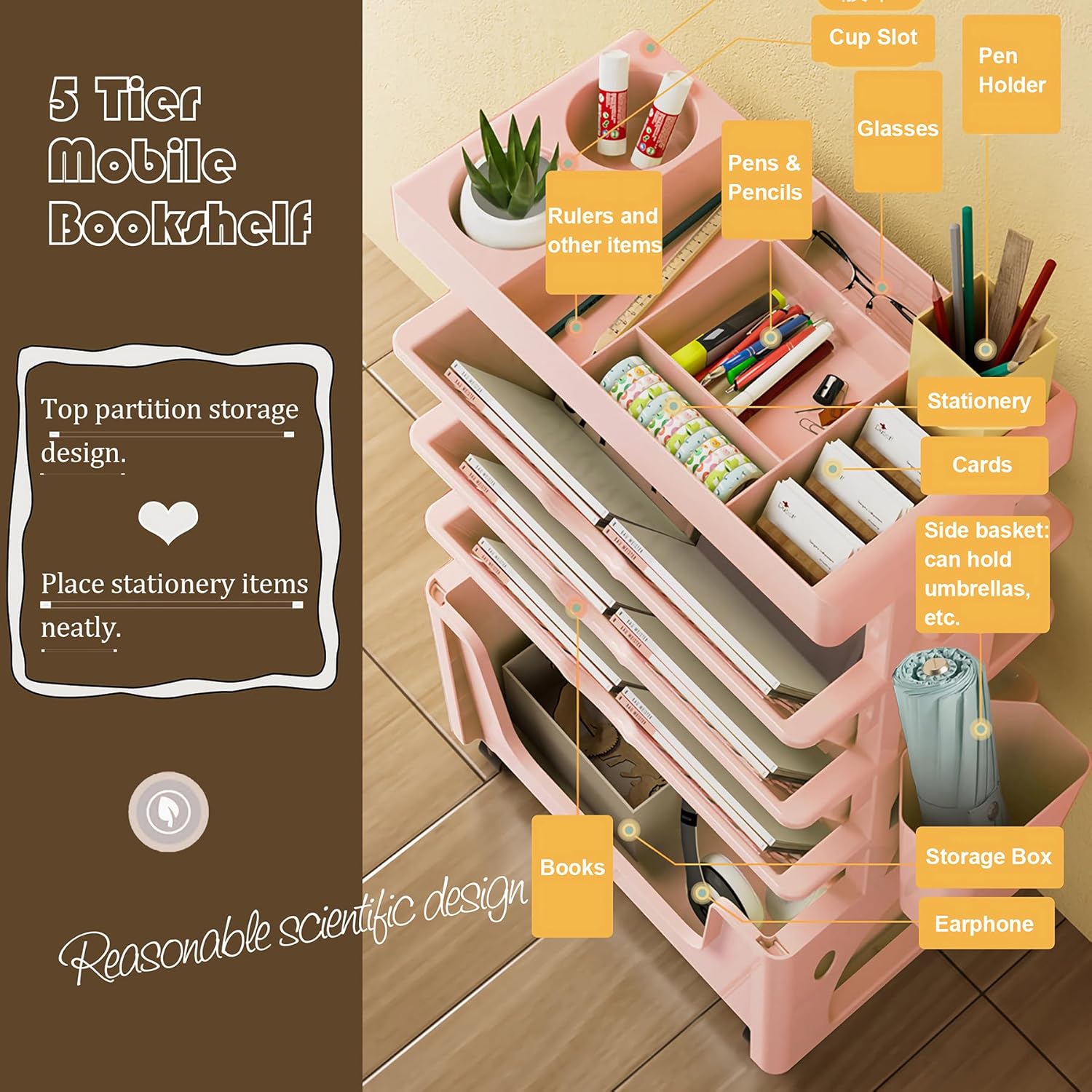 Unlock Your Mobile Library with Our Rolling Bookshelf Cart - The Ultimate 5-Tier Book Rack Storage Solution! Perfect for Office, Dorm, and Classroom Use. Get Rolling Today!Features:1. Built to last, this 5 Tier book rack storage bookshelf cart is made from sturdy materials that can withstand the demands of daily use. The five-tier design provides plenty of room for your books, supplies, and decorative items.2. The narrow profile of this Mobile Book Shelf is tailored to fit into tight spaces, maximizing your room's potential. Its sleek and modern design complements any decor style.3. Say goodbye to clutter and welcome organization into your workspace. Each tier of this Mobile Book Shelf is designed to keep your books neatly displayed and easily accessible, helping you stay on top of your tasks.Colors:White,Pink,Yellow(The color of the picture is for reference only, please refer to the actual object)Size:L14.8*W8.86*H29.65in/L37.6*W22.5*H75.3cm(Manual measurement, there is 1-2cm error)Packing including:1*rolling book cart