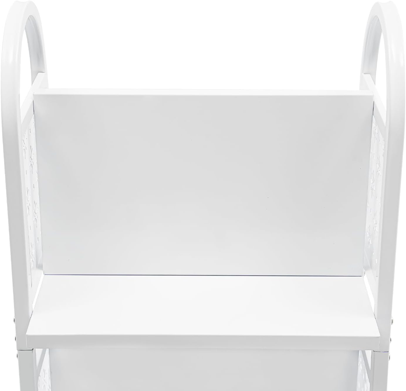 SpecificationsColor: WhiteMaterial: Carbon SteelProcess: Spraying, High-temperature Baking PaintMount Type: Floor StandingAssembly Required: YesNumber of Tiers: 2Number of Compartments: 4Each Board Weight: 22.68kg/50lbsProduct Overall Size: 43.18*33*86.36cm/17*13*34inOne Side Width: 15.24cm/6inSide Board Height: 25.4cm/10inPackaging Size: 46*38*13cm/18.11*14.96*5.12inGross Weight: 7.6kg/16.76lbsNet Weight: 7kg/15.43lbsPackage Included1*Rolling Book Cart4*Casters1*English DiagramOther Needed AccessoriesNotes1. Please check the size carefully before ordering.2. Please read the installation diagram for better and quicker installation results.3. Please allow the slight color difference caused by the shooting light and 1-3cm error due to manual measurement, and make sure you do not mind before you order.