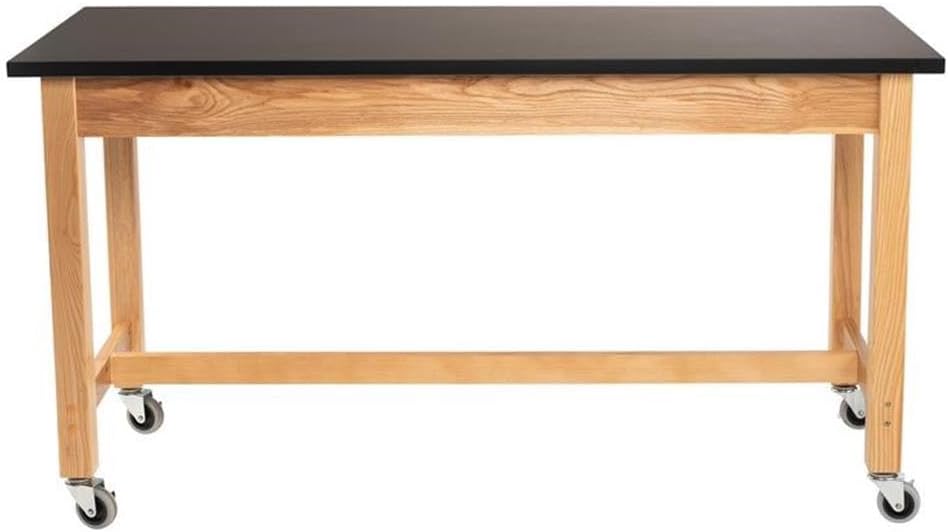 The NPS SLT Science Lab Tables have "perfect chemistry" with any science classroom. These paragons of endurance are built with solid ash framework, side panels and legs beneath a thick "Chem-Res" tabletop with a MDF core. The work surface is of solid black, firmly secured, high-pressure laminate, resistant to water and 13 commonly-used laboratory chemicals. Robust legs are spot-welded to the frame with metal-on-metal double-bolts on 13-gauge steel corner braces for maximal strength and durability. Feet are outfitted with rubber liquid-protective boots and adjustable glides for accurate floor leveling. The SLT meets MAS Certified Green environmental industrial standards.Features:- Material: Solid ash legs and apron; chem-res high-pressure laminate top on a 1" thick core- Finish: Black- Legs attach with metal on metal double bolt through assembly on 13-gauge steel corner braces- Rubber liquid protecting bootsSpecifications:- Product Dimensions: 30"H x 24"W x 54"D- Product Weight: 76 lbs- Weight Capacity: 500 lbs