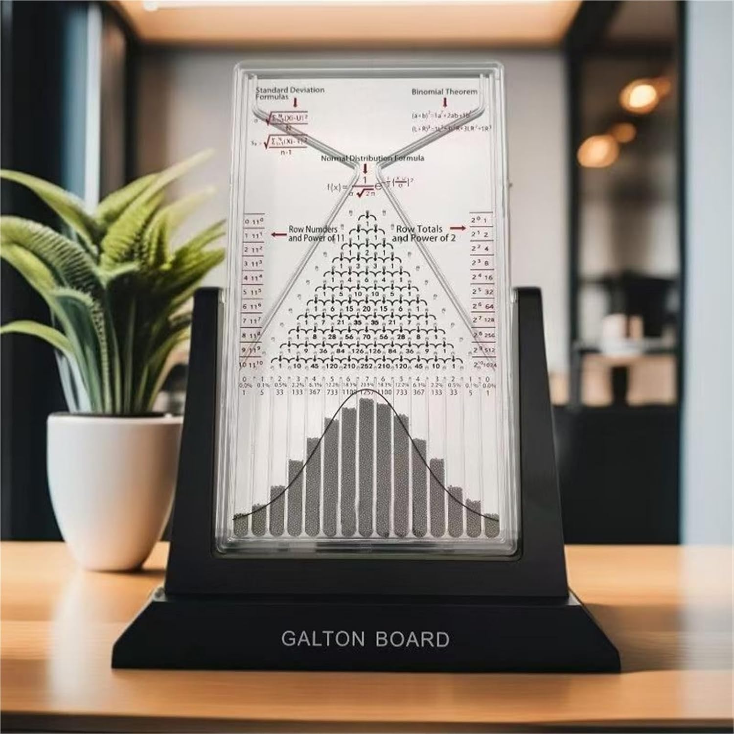 Specifications:Name: Galton BoardMaterial: AcrylicUse: DesktopWeight: 600g7500 Metal Beadsduct Includes:1pc * Galton Board