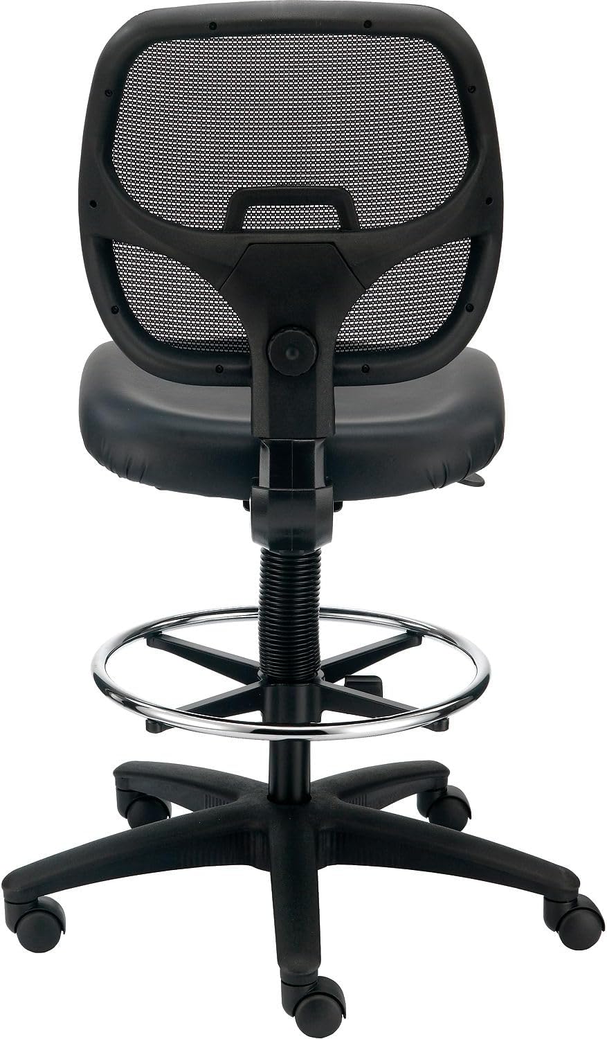 Ergonomic design with nylon mesh back conforms to body for cool, ventilated and supportive comfort. 16-1/2"H x 17-3/4"W plastic trim backrest ensures long lasting durability. Drafting Stool built-in lumbar support provides added back comfort. Back is height adjustable 1-1/2 inches. Polypropylene five-blade base with 2" dual-wheel carpet casters provide easy mobility. Easy assembly., Lot of 1