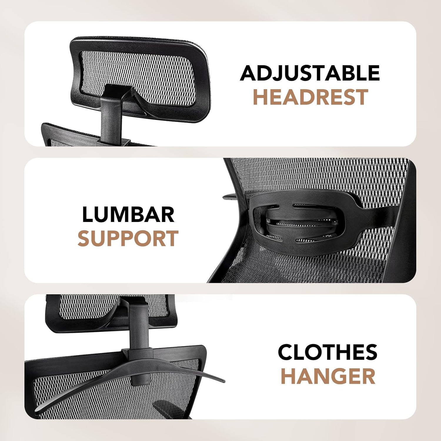 | Additional Features | Adjustable Height, Adjustable Lumbar Support, Adjustable Armrest, Breathable Mesh, Tilt Function, Ergonomic, Rolling, Adjustable Headrest, Clothes Hanger |