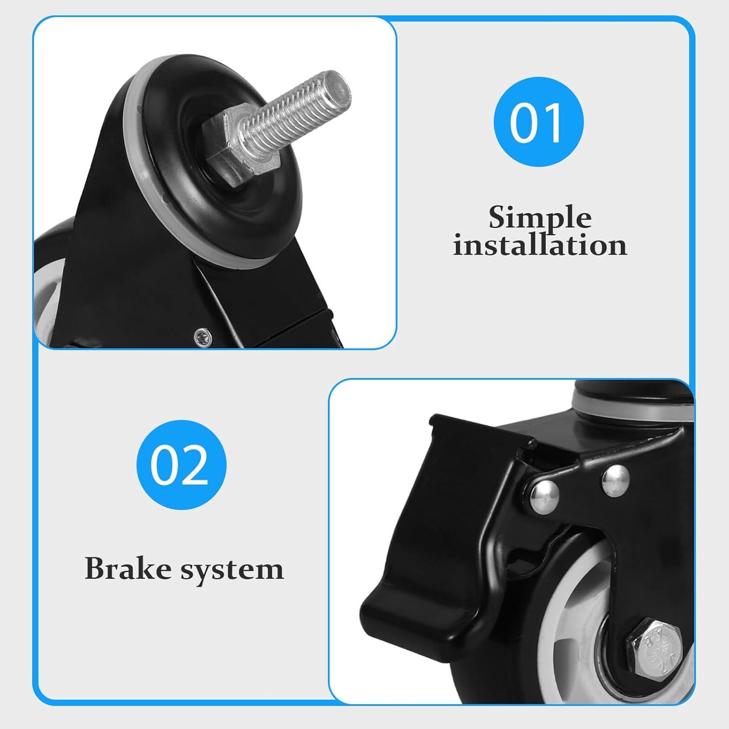 Package List 2 x Furniture Brake Casters Characteristics -Size:13.50X13.20X5.80cm/5.31X5.19X2.28in -Color:Multi - design: suitable for a wide range of furniture and equipment, these wheels provide a practical Caster Wheels for various mobility and adjustment requirements caster wheels for furniture -Material:Polyurethane -Secure braking: the advanced brake system makes your furniture stays , providing added safety and stability during use cabinet wheels -Lownoise use: reduce noise with these quiet caster wheels, Suitable for maintaining a serene environment in homes, offices, and facilities swivel casters -Easy mobility for heavy items: the 3 inch wheels are designed for smooth and Easy movement, making them ideal for transporting heavy furniture or equipment industrial hardware -Product Info: Furniture brake casters -Polyurethane Polyurethane build: constructed with Sturdy Polyurethane material, these casters offer exceptional wear resistance for longterm reliabilityGoods Descriptioncaster wheels with brakes Designed to meet the needs of modern users, these caster wheels offer a combination of style, functionality, and convenience.stem casters Suitable for enhancing the usability of furniture in both residential and commercial settings.workbench casters They help protect floors from scratch, furniture mobility, and provide a stable base when locked
