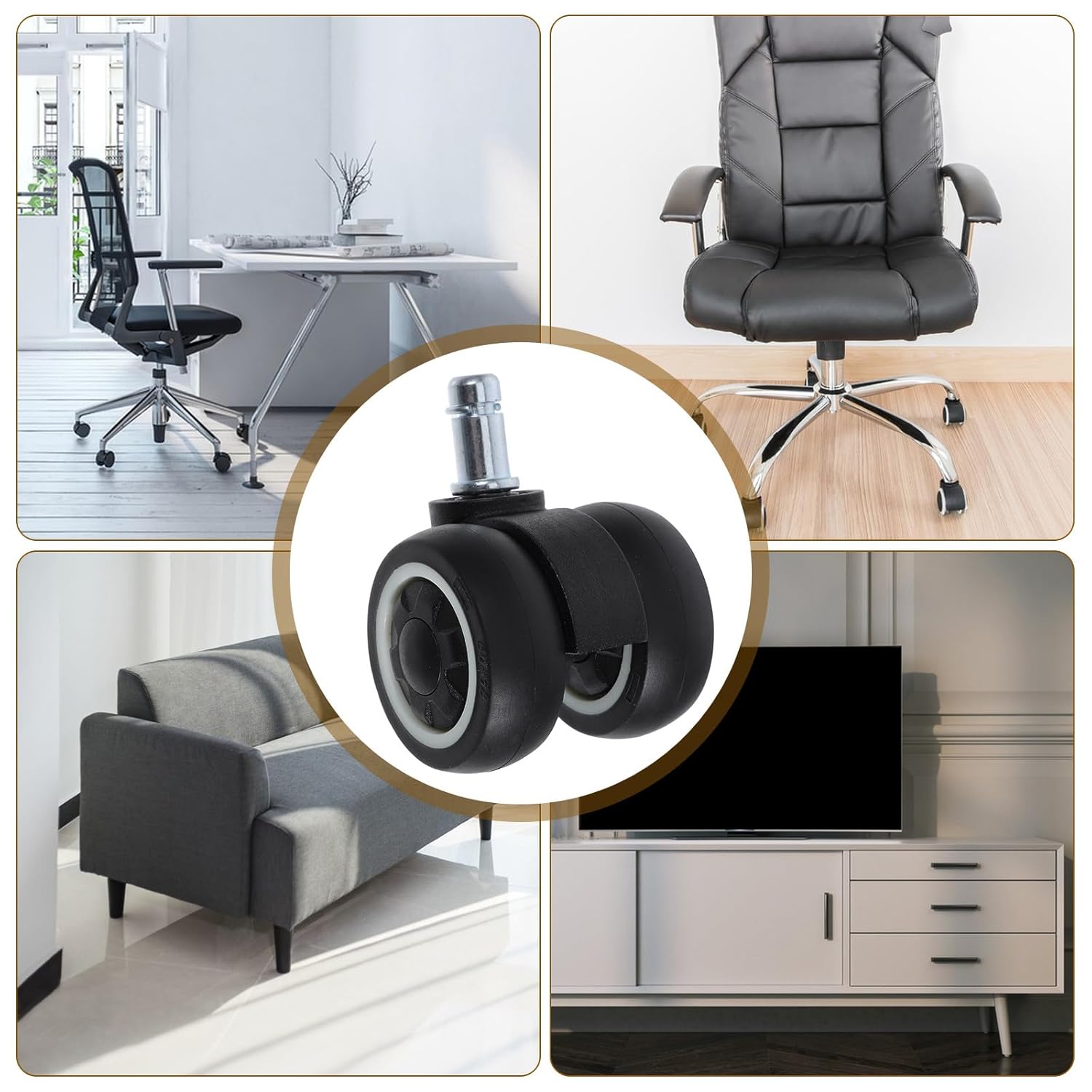 Package Include 5 x office chair swivel casters Features -Smooth rotation: swivel wheel ensuring smooth and easy movement, enhancing your chair's mobility metal table legs with wheels - Rod height: 22mm rolling swivel wheels - Wheel width: 60mm crib wheels -Simple to install: with an easy installation process, these caster wheels can be quickly attached to your chair industrial furniture casters -Quiet operation: these caster wheels are engineered to reduce noise, providing silent and peaceful environment locking casters for workbench - Maximum load bearing: 45-50kg heavy duty castor wheels - Mounting height: 55mm rolling stool wheels -Multipurpose: ideal for various chair types such as office chairs, gaming chairs, and computer chairs casters for office chair - Screw rod diameter: 11mm heavy duty chair wheel -Durability: made from robust materials, these wheels are designed to withstand prolonged use -Product Info:Universal Casters for Office Chair - Wheel diameter: 50mm silent chair casters -Color:Black -Size:7.00X5.50X5.00cm/2.75X2.16X1.97in -Material:TPR, metalGoods Informationshopping cart wheels Enjoy a quieter and smoother rolling experience.heavy duty castor wheels Upgrade your office or gaming chair with these casters.casters for office chair These silent swivel casters provide excellent maneuverability and are suitable for various floor surfaces, including hardwood and carpet