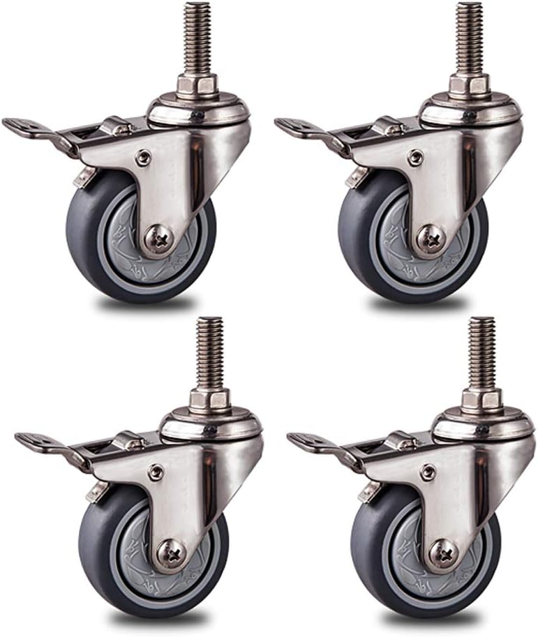 * Casters can be rotated 360 degrees, smooth and smooth, easy to turn.*Double brake design, stop at any time, safe and stable.*Stainless steel, waterproof, rust-proof, anti-corrosion, etc., higher securityCapacity LBS:Each 1.5-inch caster has a capacity of 25kg (100KG / 4)Each 2-inch caster has a capacity of 35kg (140KG / 4)Product specifications:Material: Stainless steelPacking: 4 casters in the packageDiameter: 40mm / 50mm (1.5in / 2in)Wheel width: 20mm/22mm (1.5in/ 2in)Installation height: 60mm / 70mm (1.5in / 2in)Screw size: 25mm * 10mmnote:★All products are naturally collected and measured by hand. Due to the angle of shooting, light and display, slight errors and chromatic aberrations are inevitable. Thank you for your understanding.▶ We are always committed to providing quality service. If you have any questions, please contact us. Thank you for your support and recognition.
