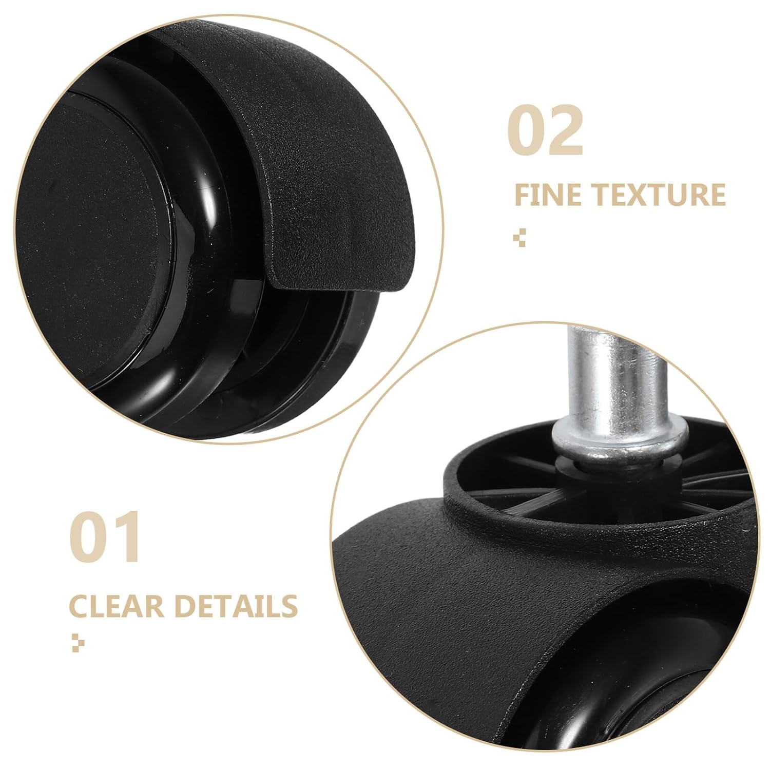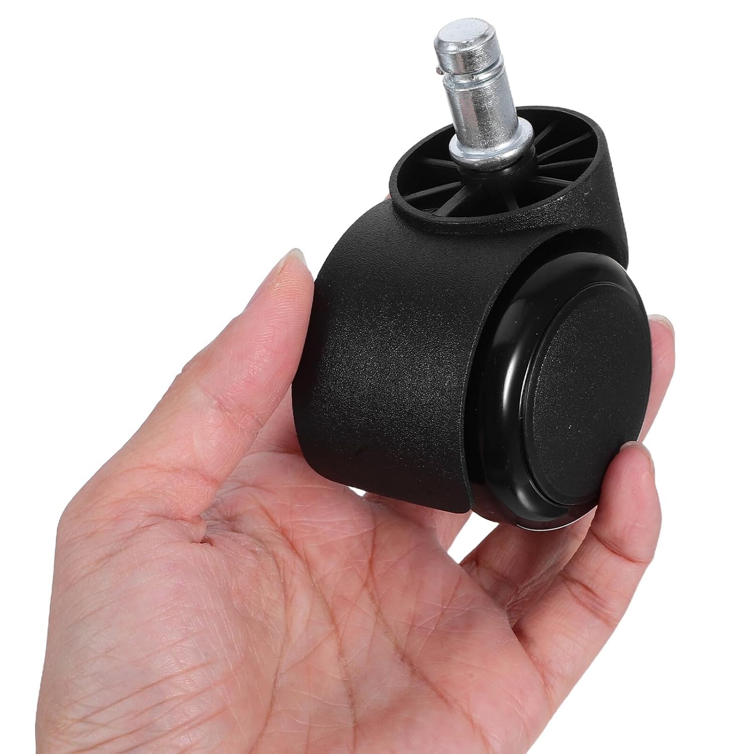 Package List 10 x office chair casters Features -Color:Black -Size:7.70X6.70X5.20cm/3.03X2.63X2.04in -Material:Nylon + Steel -Product Info: Office chair casters -Versatile design: the black color and universal size make these wheels compatible with most office chairs and furniture -Quiet rolling: silent swivel technology ensures smooth and noisefree movement, enhancing focus in quiet office settings computer chair wheels -strong construction: engineered for heavyduty applications, these wheels offer reliable support and stability for large office chairs desk chair casters -Simple installation: the innovative stem clip design makes replacing or installing these caster wheels quick and straightforward office caster wheels - floors: protect your flooring with these furnituregrade caster wheels, designed to prevent marks and replacement chair wheelsGoods Informationrolling chair wheels replacement The smooth-rolling design of these chair wheels enhances mobility, allowing users to move freely without resistance.chair roller wheels Whether for work or relaxation, they provide a stable and quiet rolling experience.office chair locking wheels Their universal compatibility makes them suitable for replacing worn-out wheels on various furniture pieces