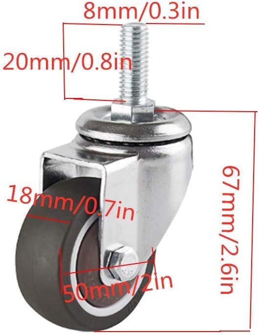 Easy to operate and install, easy to clean, enjoy the fun of DIY.Using our new casters, your house looks new and vibrant.If your furniture has casters, you can easily move the furniture when changing the house or cleaning the room.All small furniture with hardwood floors, offices, hospitals, schools, factories, etc., you do not have to worry about damage to our casters.product specifications:Name: Office Chair WheelMaterial: TpE material + cold rolled steelWheel diameter: 50mm/2inInstallation height: 70mm/2.7in; 67mm/2.6inScrew specifications: M8/M10Single wheel load: 90kgFeatures: noiseless rolling/precision ball bearing/smooth and flexible.package content: 4X castersNote:Different computer monitors, please allow 1-2cm size deviation and slight color differenceOur goal is to provide customers with the best products and provide customers with the best service. If you have any questions, please do not hesitate to contact us, we will solve the problems related to the product in time.