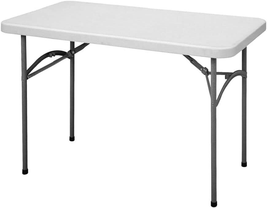 Economical Folding Tables and Chairs for Home and Office use. Light weight plastic folding table with waterproof, stain & impact resistant top. Table Size is 30"x72" Rectangle. Standard 29" height. Gray Granite plastic top will not scratch or wear off, color goes all the way through the top. Rugged Charcoal steel frame