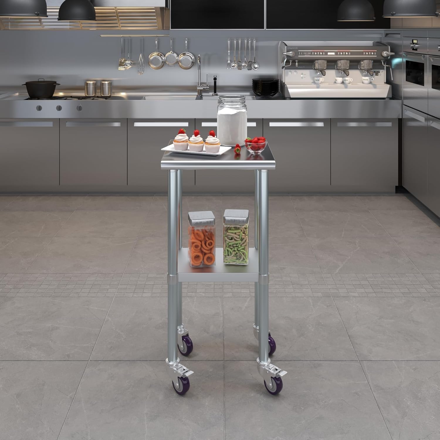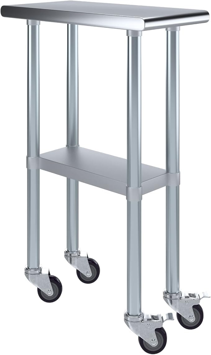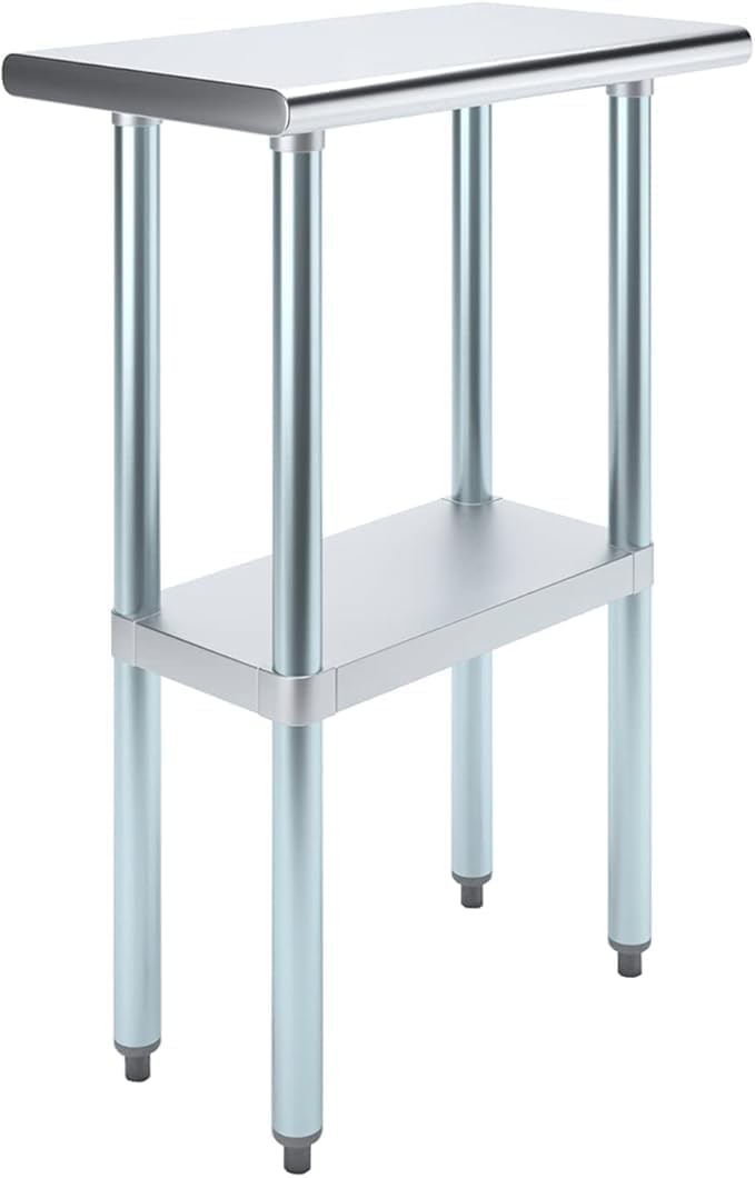 A Stainless Steel Utility Work Table is a great addition to any home or business. It is perfect for a variety of tasks, including a workbench, prep table, or general-purpose table. The included bottom shelf provides additional storage space. Some assembly is required. NSF certification allows the table to be used in any food service environment. The table is made with corrosion resistant 430 stainless steel top and galvanized legs and bottom shelf. It's built to withstand heavy use and everyday wear and tear. Whether you need a sturdy workspace for your next DIY project or simply want an extra prep area in the kitchen, this utility table has you covered.