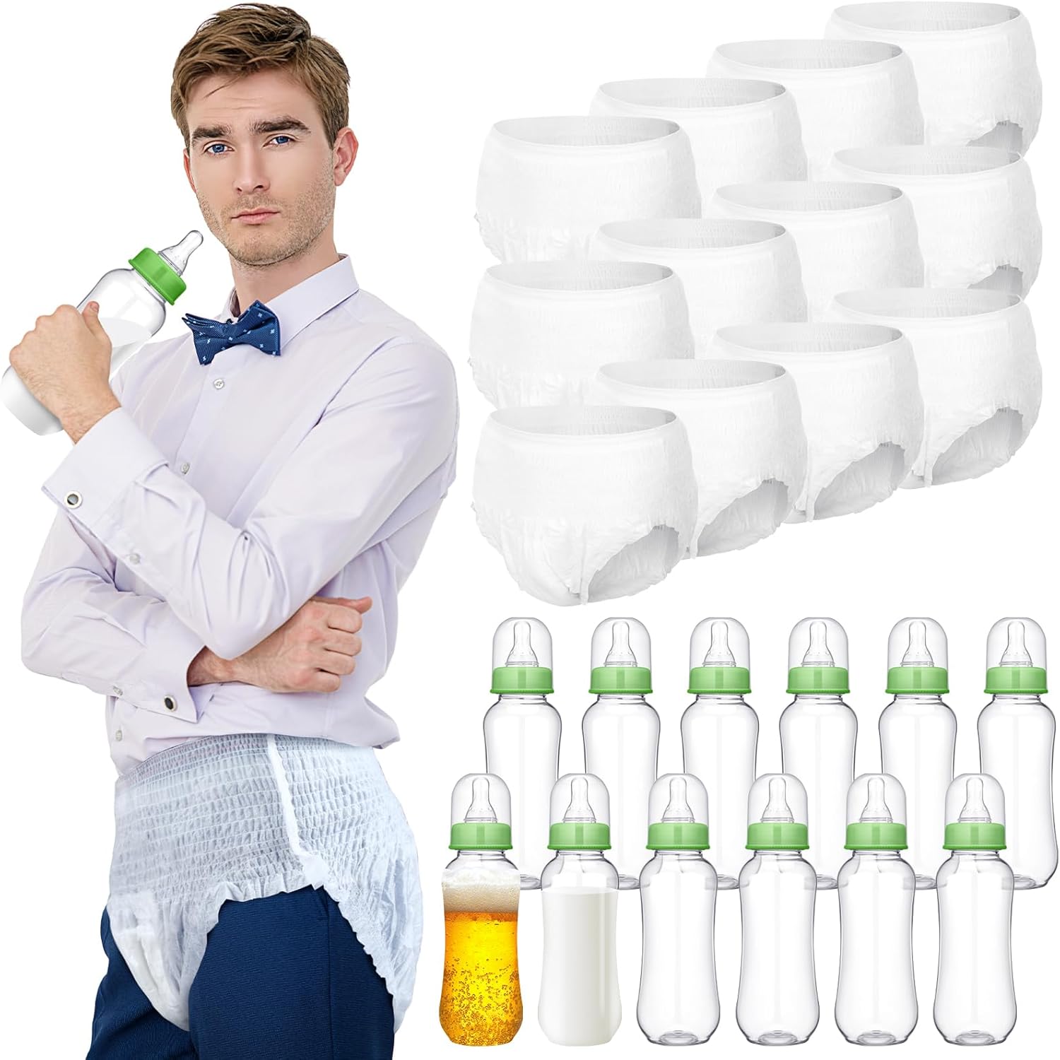 Features: Package for Your Convenience: Our baby shower game package includes 12 plastic baby shower bottles and 12 large size diapers. That's all you need to beautify your party and involve your guests in a hilarious game. Suitable Size for Baby Shower Game: Our plastic baby shower bottles have a volume of 9.5 oz/ 280 ml while our large size diapers are apt for an XL fit. It is just the right size for all participants to have fun and enjoy the game, making your baby shower unforgettable. Specifications: Material: plastic Size: Plastic baby shower bottles: 9.5 oz/ 280 ml Diapers: XL Package includes: 12 x Plastic baby shower bottles 12 x Large size diapers Notes: Manual measurement, please allow slight errors on size. The color may exist a slight difference due to different screen displays.