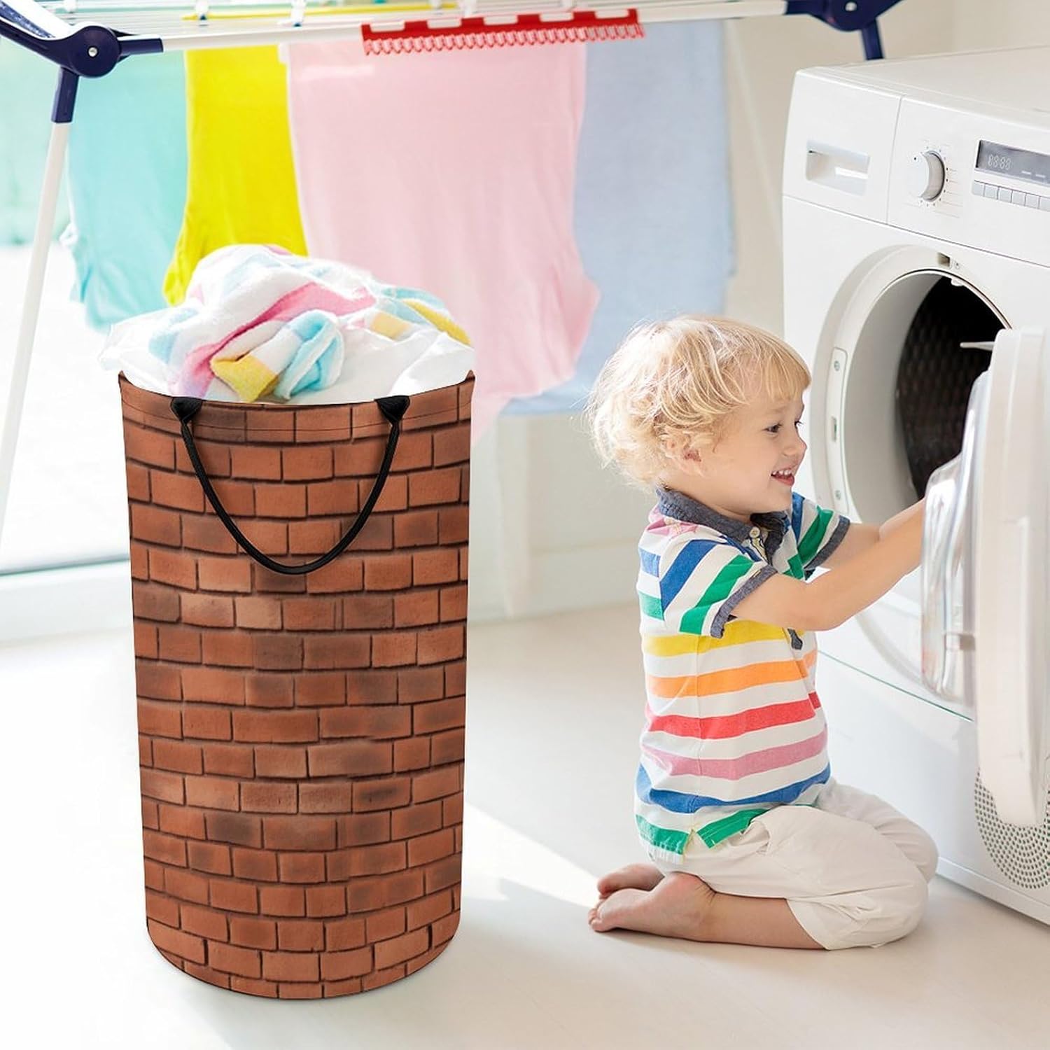 This Red Brick Wall Texture tall, roomy Laundry Hamper pairs sturdy material with practical design and ample capacity Measuring 27.2 x 15.7 inches, this Large Clothes Basket offers generous storage space for daily household needs, easily holding a large quantity of items to meet all your sorting and stowing demands. Crafted from 100% polyester fabric, this Red Brick Wall Texture Clothes Hamper features a solid, long-wearing build that stands up to regular daily use. The fabric is water-repellent, effectively keeping the interior dry and free of odd smells, ensuring the basket stays fresh for long-term use. Designed with reinforced side handles firmly attached to the body, this Red Brick Wall Texture Handy Laundry Hamper is easy to lift and move smoothly between rooms—from bedroom to bathroom, laundry area to closet. The wide opening enables effortless loading and unloading, and the tall build makes this Tall Clothes Hamper highly functional. It holds plenty of garments, linens, small items and sundries with ease, cutting down on frequent emptying during daily use. When not in use, this Collapsible Laundry Bag folds flat into a slim profile for compact storage, saving valuable space in closets, cabinets, drawers or under the bed. This foldable structure makes it a flexible Collapsible Hamper suitable for any living space, whether a spacious family home, cozy apartment or compact dorm room. This Red Brick Wall Texture multi-use Dirty clothes basket works well in bedrooms, bathrooms, laundry areas, living rooms and entryways, adapting to all home storage scenarios. It keeps dirty clothes, small playthings, snacks, household gadgets and miscellaneous items neatly sorted and contained, reducing clutter and helping keep your home neat and organized every day. It’s more than just a laundry solution, but a versatile storage accessory that streamlines home organization and adds daily convenience.