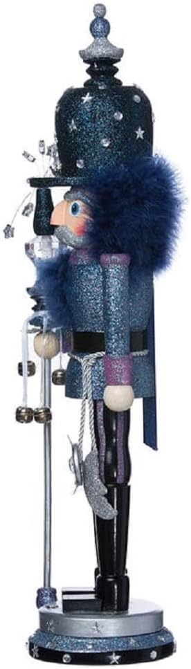 Designed by renowned artist Holly Adler, Hollywood Nutcrackers are a whimsical collection of nutcrackers created exclusively for Kurt S. Adler, Inc. and features a variety of designs including Christmas, fantasy and everyday nutcrackers. This 19" Hollywood Nutcracker by Kurt Adler features a guard nutcracker dressed in navy blue attire with a navy hat embellished with silver stars. Around his waist hangs a cutout of a silver star and moon and he holds a blue and silver staff. This Hollywood Nutcracker is here to protect and serve you while the stars remain in the night sky.