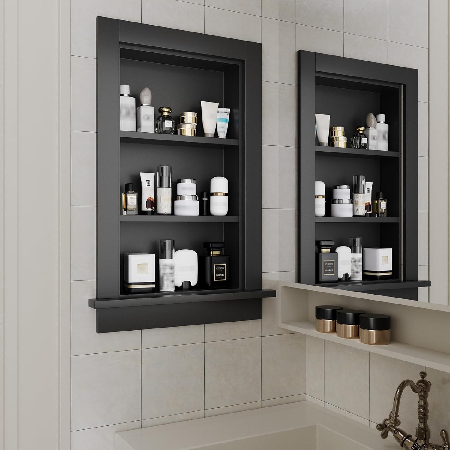 Maximize your home storage with this Wood Recessed Wall Niche, a practical and durable built-in cabinet perfect for any room. Crafted from high-quality solid wood, this recessed wall cabinet offers sturdy construction and a clean, streamlined look that blends seamlessly with your home décor. Available in two sizes (18"×14" and 24"×14"), both models fit neatly between wall studs, making it a perfect space-saving wall niche. The 24"×14" cabinet comes with two adjustable shelves, allowing you to customize the interior for bathroom storage, bedroom organization, living room essentials, or kitchen items. The smaller 18"×14" version provides a compact yet elegant recessed storage solution for tighter spaces. This wood recessed cabinet arrives fully assembled and ready for installation. Simply insert it into your pre-cut wall opening and secure it with the included screws for a flush, built-in finish—no additional tools or complicated setup required. Perfect for bathroom, bedroom, hallway, living room, or kitchen, this versatile wall niche cabinet adds practical storage while keeping your home organized and stylish. Ideal for storing toiletries, cosmetics, decorative items, or other small essentials, this solid wood recessed cabinet combines functionality and elegance in one built-in solution.