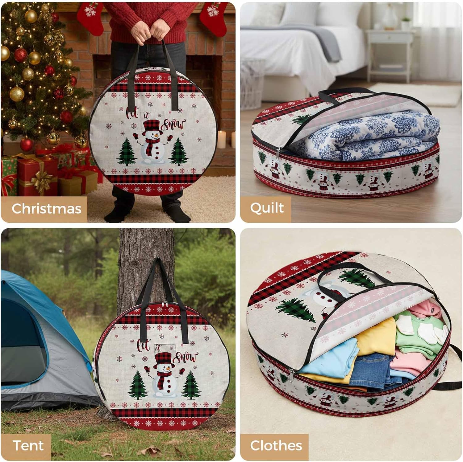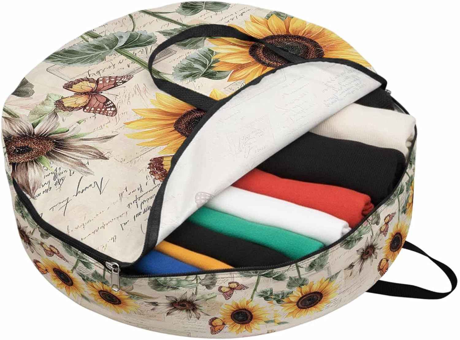 Reclaim Your Closet Space with the Round Storage Solution! Material: polyester Diameters: 24 inch, 30 inch, 36 inch Depth: 7 inches Package Includes: Round Storage Bag One Bag, Endless Possibilities: Whether you are swapping out your summer wardrobe, moving into a new dorm, or packing away holiday decorations, this bag has you covered. The circular design is uniquely suited for: Bedding: Comforters, quilts, sheet sets, and oversized pillows. Clothing: Winter coats, sweaters, and bulky ski gear. Home Decor: Holiday wreaths, garlands, and floral arrangements. Outdoor Gear: Camping blankets, sleeping bags, and beach towels. Dual Zippers: The high quality double zipper design allows the closet organizer to open wide from both sides, making it effortless to load and unload even the bulkiest comforters or wreaths. Reinforced Handles: Sturdy, reinforced handles are securely stitched to provide extra strength and a comfortable grip when carrying heavy loads or pulling the bag from under a bed. Clear Label Pocket: A transparent built-in label holder allows you to quickly identify the contents of each bag without ever having to unzip it, keeping your storage perfectly organized.