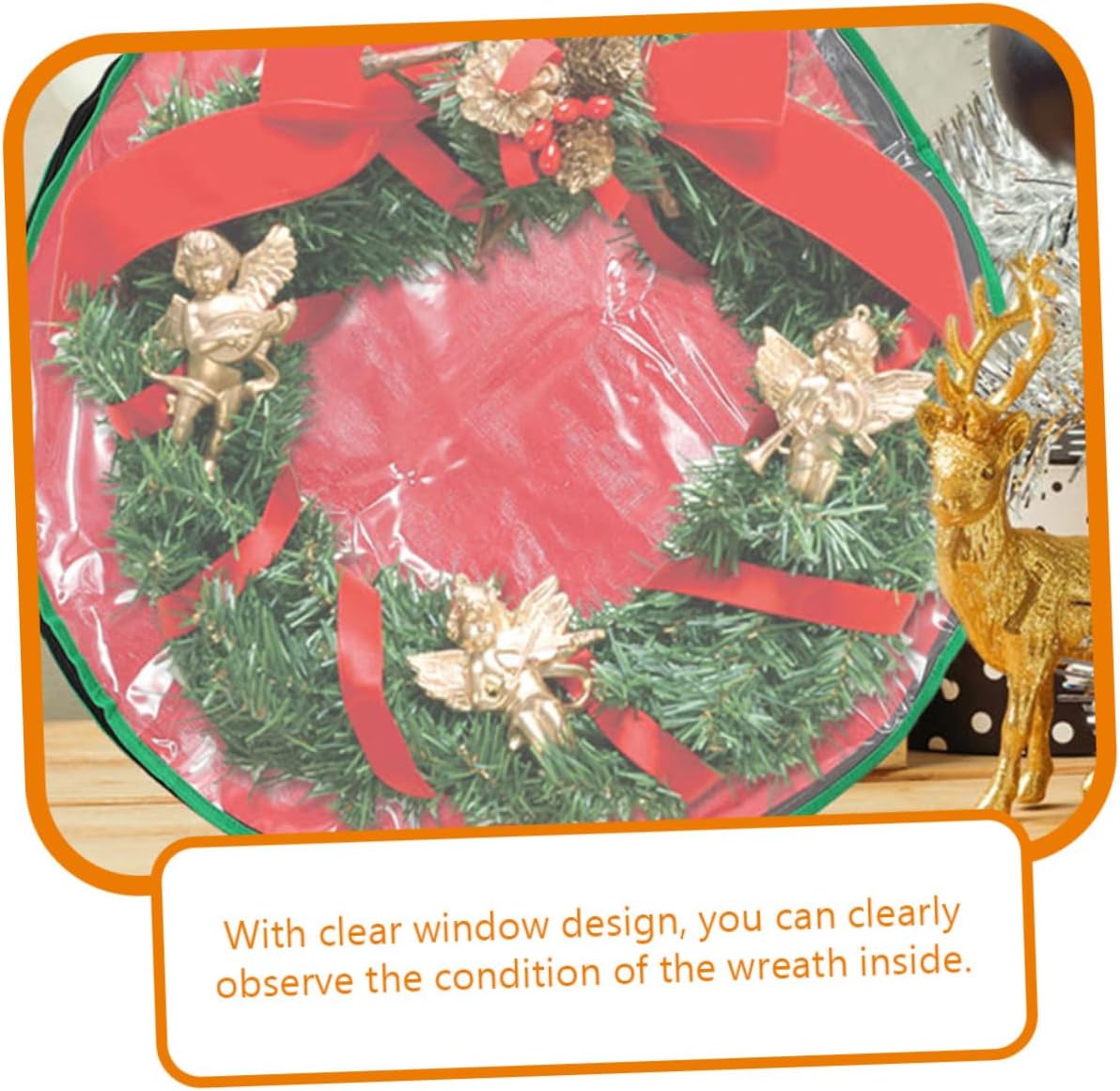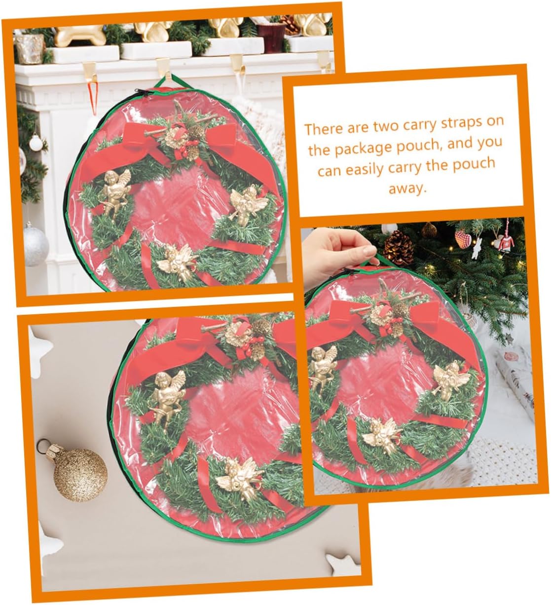 Package List 4 x wreath bag Characteristics -Size:60.00X60.00X18.00cm/23.58X23.58X7.07in Round Storage Pouch -Material:PET, PVC Visible Wreath Bag -Color:Red Garland Bag - Large size, it will meet your storage requirement. Suitable for Christmas wreath, present and more Garland Organizer. - You can also use this round large wreath storage bag to pack up the Xmas present, jewelry, etc Round Packing Bag. - Large capacity design, this holiday wreath storage bag can hold many wreaths at on time Present Bag. - With clear window design, you can clearly observe the condition of the wreath inside Xmas Garland Organizer. - There are two carry straps on the package pouch, and you can easily carry the pouch Xmas Garland Storage Bag.Goods Description Garland Organizer Can be used to store , wreaths, bells, etc. Garland Bag Are you looking for a storage bag for your wreath? If your answer is yes, you should come and take a look at this product.Foldable Wrapping Bag Specially designed for your wreath.Xmas Garland Storage Bag The material enjoys the strong durability, not easy to torn up.Present Bag It will meet your needs. Garland Pouch The bag is made of excellent materials, which is and