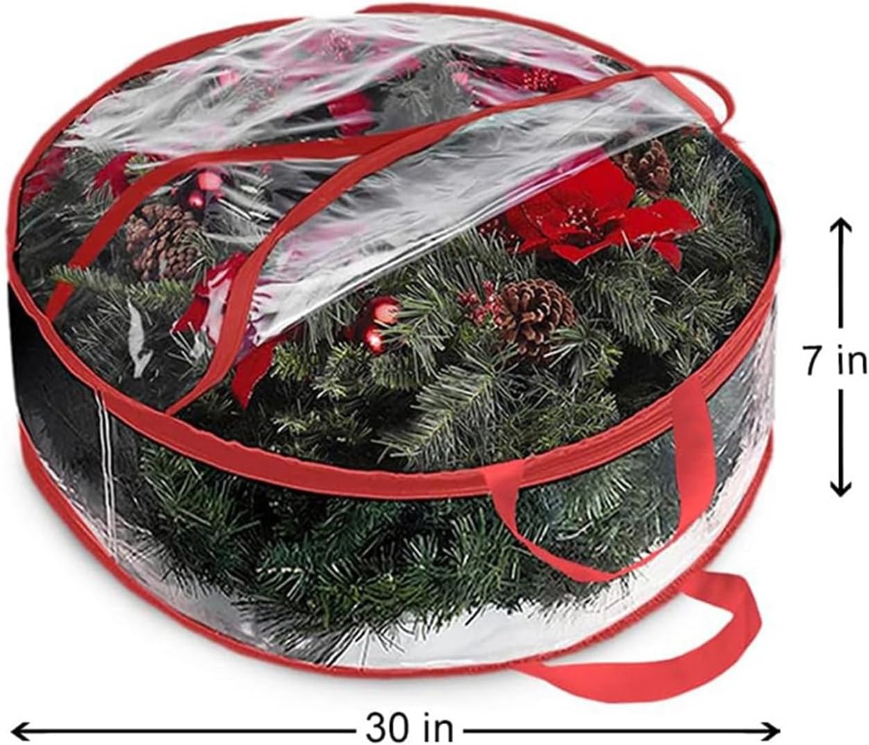 Versatile Use: These wreath bags are suitable for storing various types of Christmas wreaths, including round, heart-shaped, or other shapes. Additionally, the bags can be used to store other holiday decorations or seasonal items.These wreath storage bags protect your seasonal wreaths so you can use them again and again – year after year.Christmas accessories: the round garland holiday container is mainly in classic with nice handles, which are classic colors of Christmas, can well match the theme of Christmas party, and you can use the storage bag to store Christmas decorations or artificial wreath.Package Include:1 x Christmas Wreath Storage Bag.Protects Your Wreaths - Secure your holiday wreath decorations from damages, dust, moisture, and pests so it’s always ready to show off for Christmas, Easter, Halloween, and other special occasions