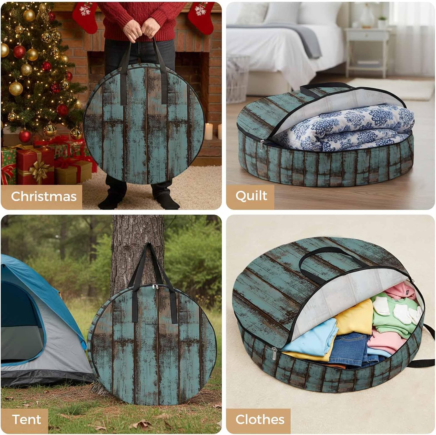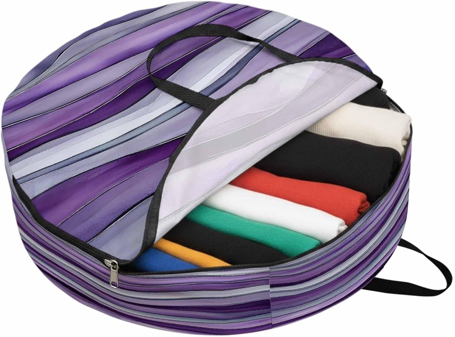 Reclaim Your Closet Space with the Round Storage Solution! Material: polyester Diameters: 24 inch, 30 inch, 36 inch Depth: 7 inches Package Includes: Round Storage Bag One Bag, Endless Possibilities: Whether you are swapping out your summer wardrobe, moving into a new dorm, or packing away holiday decorations, this bag has you covered. The circular design is uniquely suited for: Bedding: Comforters, quilts, sheet sets, and oversized pillows. Clothing: Winter coats, sweaters, and bulky ski gear. Home Decor: Holiday wreaths, garlands, and floral arrangements. Outdoor Gear: Camping blankets, sleeping bags, and beach towels. Dual Zippers: The high quality double zipper design allows the closet organizer to open wide from both sides, making it effortless to load and unload even the bulkiest comforters or wreaths. Reinforced Handles: Sturdy, reinforced handles are securely stitched to provide extra strength and a comfortable grip when carrying heavy loads or pulling the bag from under a bed. Clear Label Pocket: A transparent built-in label holder allows you to quickly identify the contents of each bag without ever having to unzip it, keeping your storage perfectly organized.