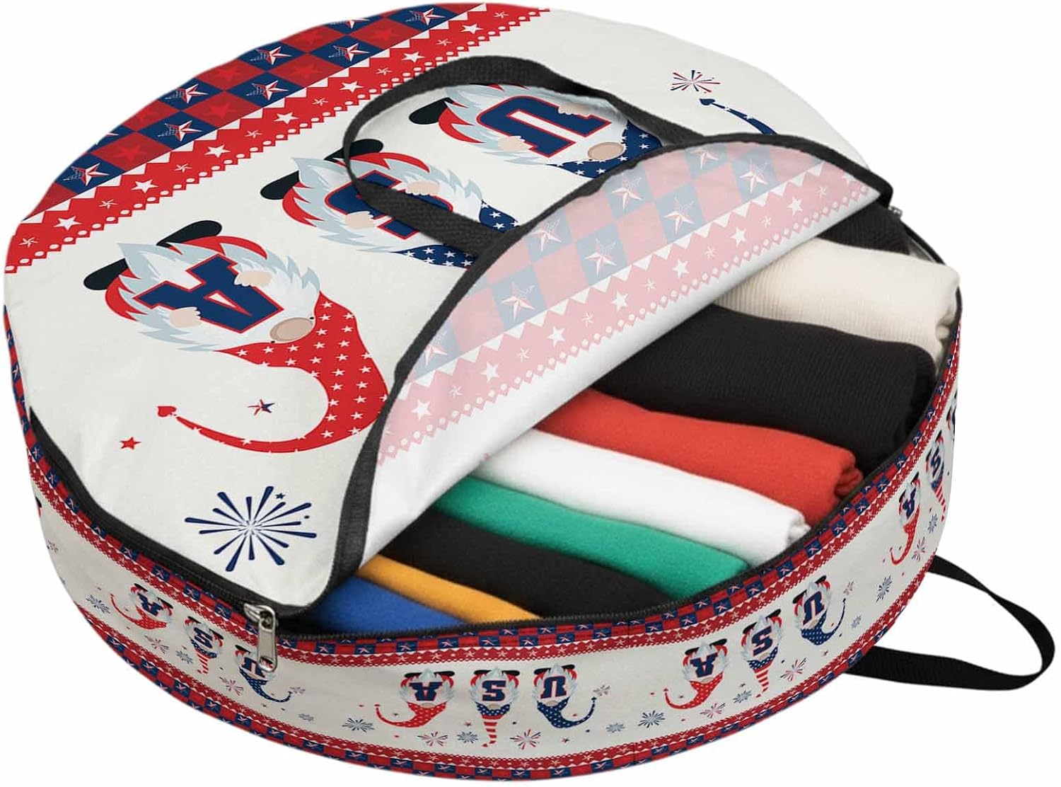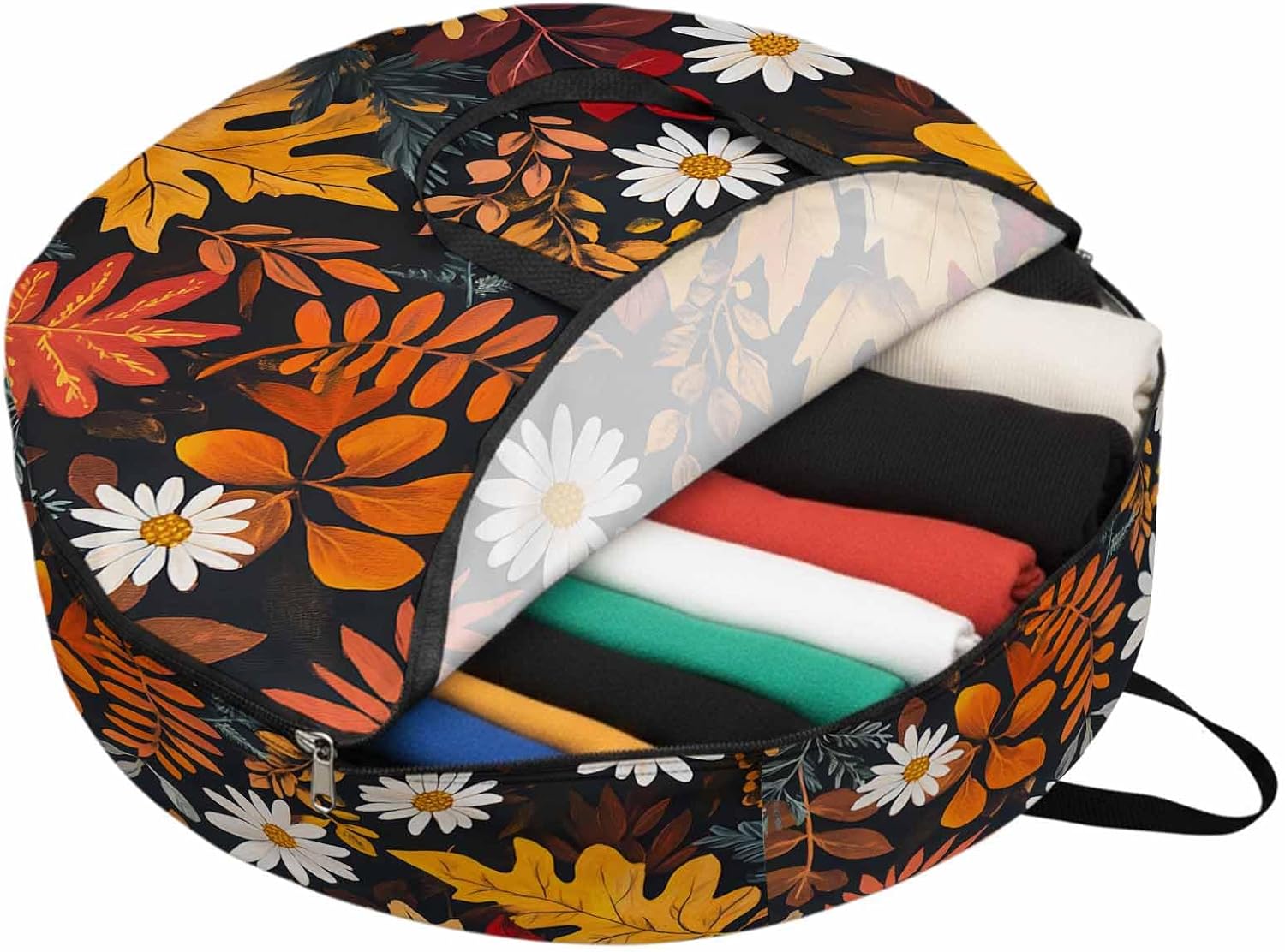 Reclaim Your Closet Space with the Round Storage Solution! Material: polyester Diameters: 24 inch, 30 inch, 36 inch Depth: 7 inches Package Includes: Round Storage Bag One Bag, Endless Possibilities: Whether you are swapping out your summer wardrobe, moving into a new dorm, or packing away holiday decorations, this bag has you covered. The circular design is uniquely suited for: Bedding: Comforters, quilts, sheet sets, and oversized pillows. Clothing: Winter coats, sweaters, and bulky ski gear. Home Decor: Holiday wreaths, garlands, and floral arrangements. Outdoor Gear: Camping blankets, sleeping bags, and beach towels. Dual Zippers: The high quality double zipper design allows the closet organizer to open wide from both sides, making it effortless to load and unload even the bulkiest comforters or wreaths. Reinforced Handles: Sturdy, reinforced handles are securely stitched to provide extra strength and a comfortable grip when carrying heavy loads or pulling the bag from under a bed. Clear Label Pocket: A transparent built-in label holder allows you to quickly identify the contents of each bag without ever having to unzip it, keeping your storage perfectly organized.