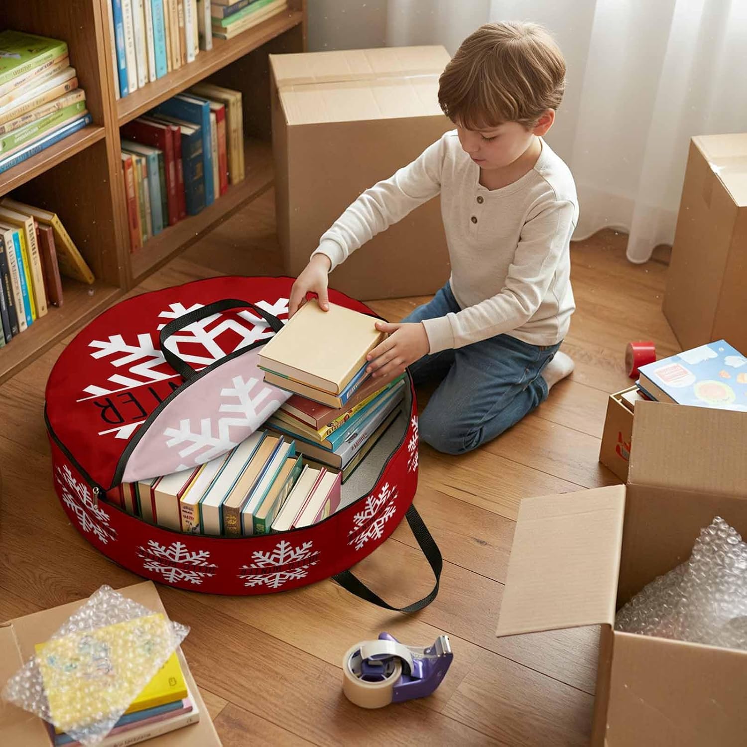 Reclaim Your Closet Space with the Round Storage Solution! Material: polyester Diameters: 24 inch, 30 inch, 36 inch Depth: 7 inches Package Includes: Round Storage Bag One Bag, Endless Possibilities: Whether you are swapping out your summer wardrobe, moving into a new dorm, or packing away holiday decorations, this bag has you covered. The circular design is uniquely suited for: Bedding: Comforters, quilts, sheet sets, and oversized pillows. Clothing: Winter coats, sweaters, and bulky ski gear. Home Decor: Holiday wreaths, garlands, and floral arrangements. Outdoor Gear: Camping blankets, sleeping bags, and beach towels. Dual Zippers: The high quality double zipper design allows the closet organizer to open wide from both sides, making it effortless to load and unload even the bulkiest comforters or wreaths. Reinforced Handles: Sturdy, reinforced handles are securely stitched to provide extra strength and a comfortable grip when carrying heavy loads or pulling the bag from under a bed. Clear Label Pocket: A transparent built-in label holder allows you to quickly identify the contents of each bag without ever having to unzip it, keeping your storage perfectly organized.