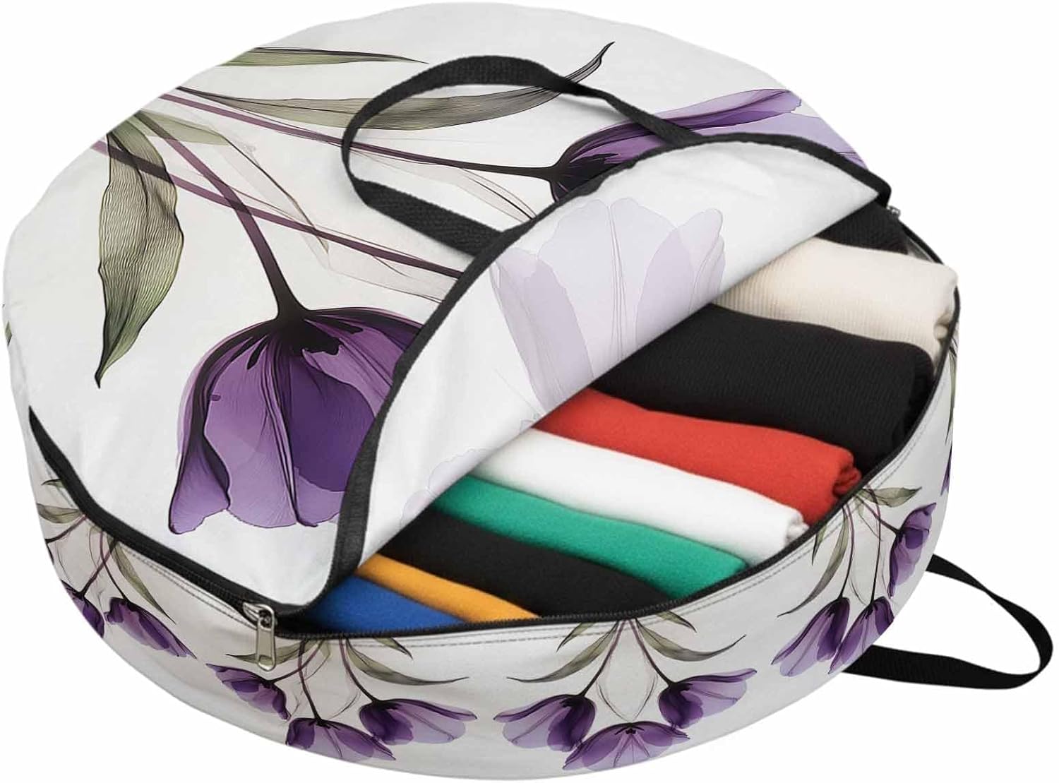 Reclaim Your Closet Space with the Round Storage Solution! Material: polyester Diameters: 24 inch, 30 inch, 36 inch Depth: 7 inches Package Includes: Round Storage Bag One Bag, Endless Possibilities: Whether you are swapping out your summer wardrobe, moving into a new dorm, or packing away holiday decorations, this bag has you covered. The circular design is uniquely suited for: Bedding: Comforters, quilts, sheet sets, and oversized pillows. Clothing: Winter coats, sweaters, and bulky ski gear. Home Decor: Holiday wreaths, garlands, and floral arrangements. Outdoor Gear: Camping blankets, sleeping bags, and beach towels. Dual Zippers: The high quality double zipper design allows the closet organizer to open wide from both sides, making it effortless to load and unload even the bulkiest comforters or wreaths. Reinforced Handles: Sturdy, reinforced handles are securely stitched to provide extra strength and a comfortable grip when carrying heavy loads or pulling the bag from under a bed. Clear Label Pocket: A transparent built-in label holder allows you to quickly identify the contents of each bag without ever having to unzip it, keeping your storage perfectly organized.