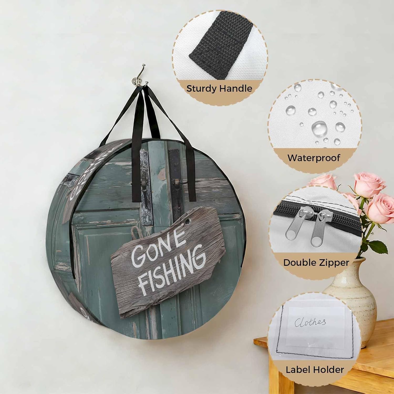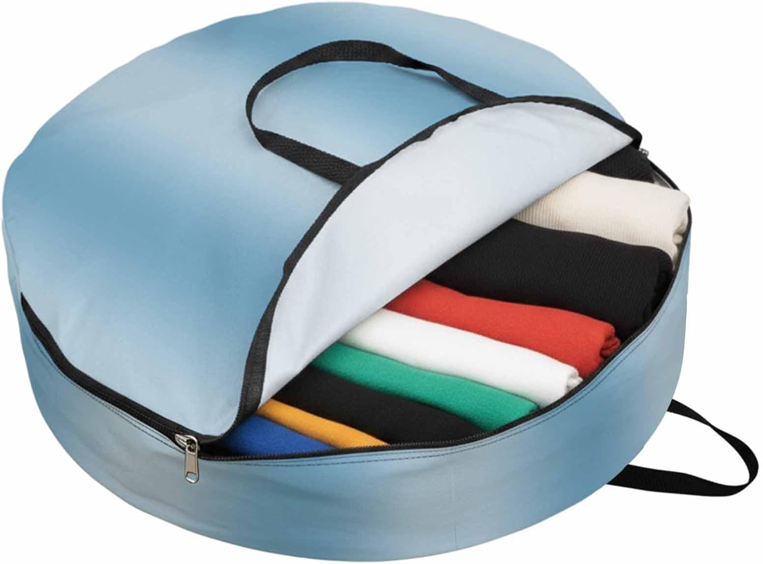 Reclaim Your Closet Space with the Round Storage Solution! Material: polyester Diameters: 24 inch, 30 inch, 36 inch Depth: 7 inches Package Includes: Round Storage Bag One Bag, Endless Possibilities: Whether you are swapping out your summer wardrobe, moving into a new dorm, or packing away holiday decorations, this bag has you covered. The circular design is uniquely suited for: Bedding: Comforters, quilts, sheet sets, and oversized pillows. Clothing: Winter coats, sweaters, and bulky ski gear. Home Decor: Holiday wreaths, garlands, and floral arrangements. Outdoor Gear: Camping blankets, sleeping bags, and beach towels. Dual Zippers: The high quality double zipper design allows the closet organizer to open wide from both sides, making it effortless to load and unload even the bulkiest comforters or wreaths. Reinforced Handles: Sturdy, reinforced handles are securely stitched to provide extra strength and a comfortable grip when carrying heavy loads or pulling the bag from under a bed. Clear Label Pocket: A transparent built-in label holder allows you to quickly identify the contents of each bag without ever having to unzip it, keeping your storage perfectly organized.