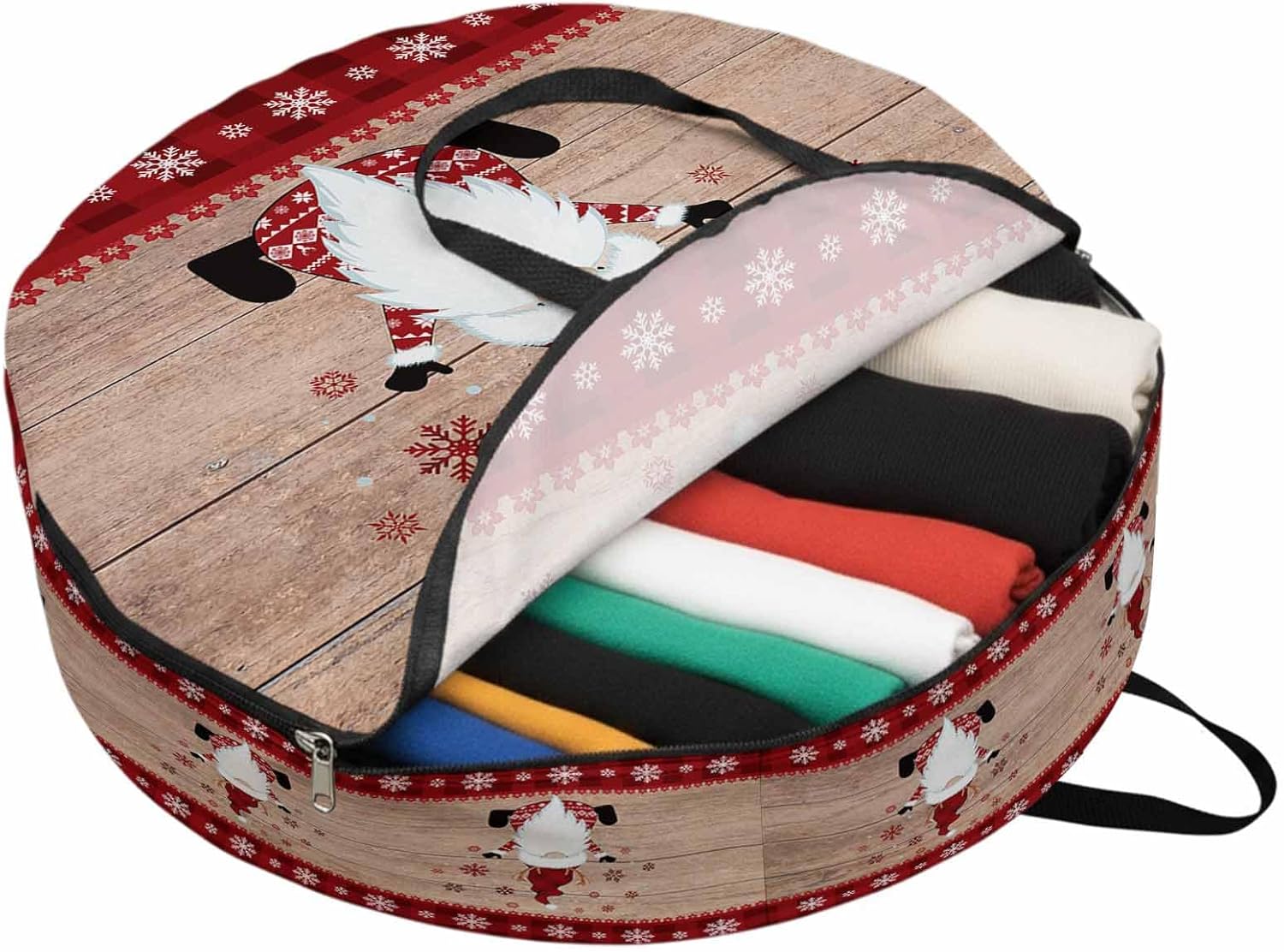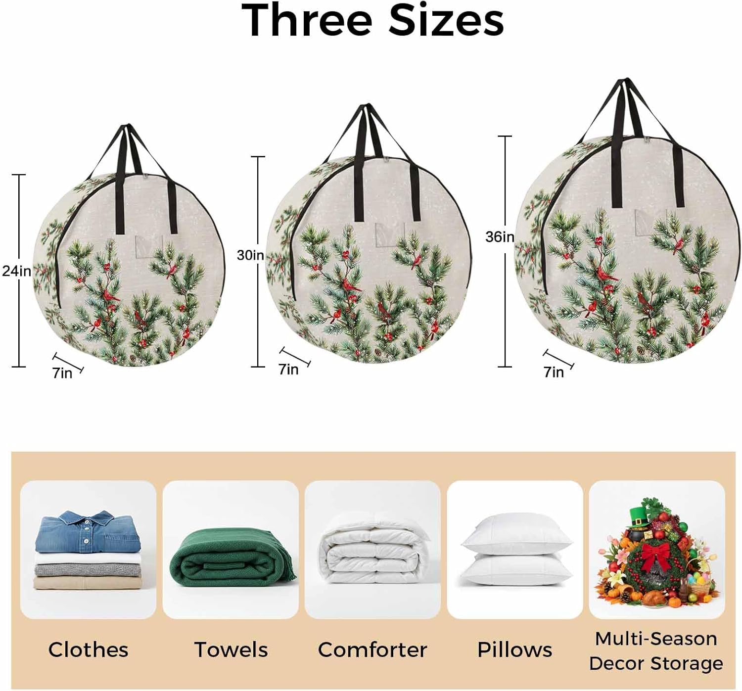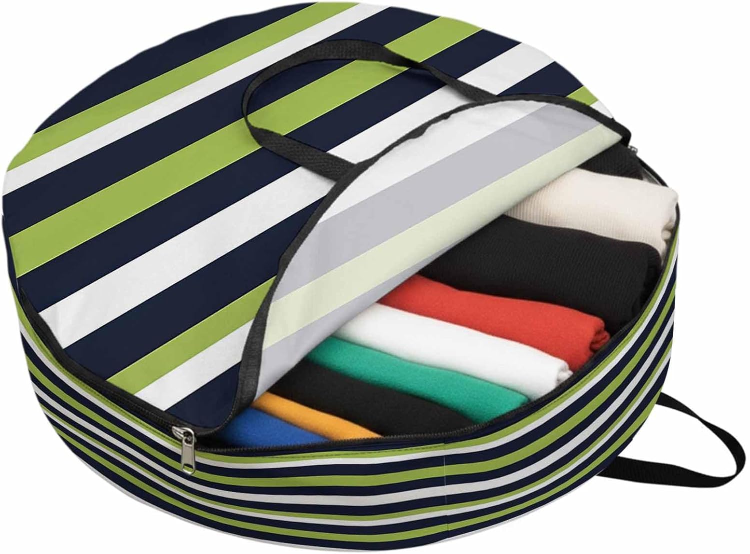 Reclaim Your Closet Space with the Round Storage Solution! Material: polyester Diameters: 24 inch, 30 inch, 36 inch Depth: 7 inches Package Includes: Round Storage Bag One Bag, Endless Possibilities: Whether you are swapping out your summer wardrobe, moving into a new dorm, or packing away holiday decorations, this bag has you covered. The circular design is uniquely suited for: Bedding: Comforters, quilts, sheet sets, and oversized pillows. Clothing: Winter coats, sweaters, and bulky ski gear. Home Decor: Holiday wreaths, garlands, and floral arrangements. Outdoor Gear: Camping blankets, sleeping bags, and beach towels. Dual Zippers: The high quality double zipper design allows the closet organizer to open wide from both sides, making it effortless to load and unload even the bulkiest comforters or wreaths. Reinforced Handles: Sturdy, reinforced handles are securely stitched to provide extra strength and a comfortable grip when carrying heavy loads or pulling the bag from under a bed. Clear Label Pocket: A transparent built-in label holder allows you to quickly identify the contents of each bag without ever having to unzip it, keeping your storage perfectly organized.