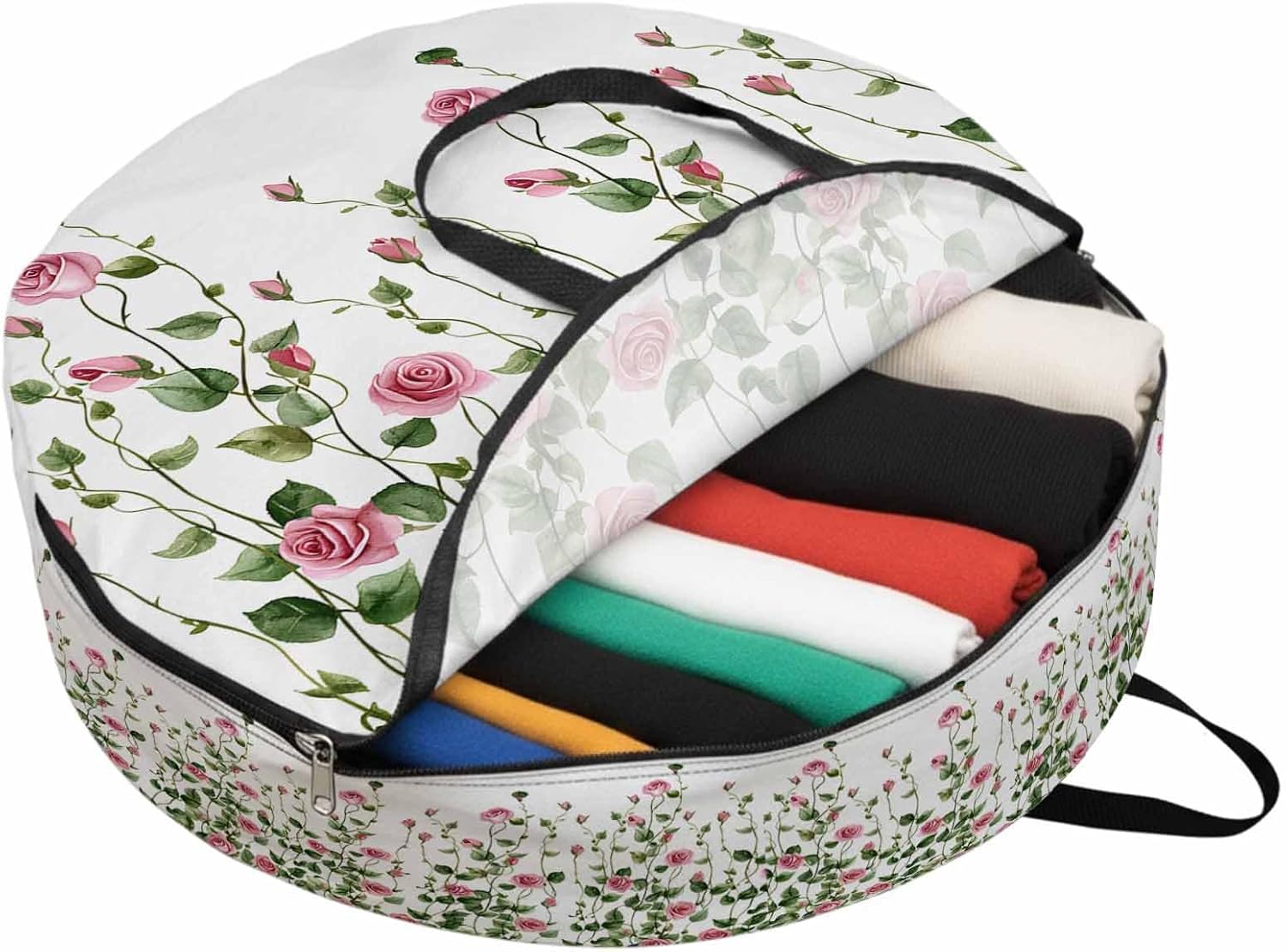 Reclaim Your Closet Space with the Round Storage Solution! Material: polyester Diameters: 24 inch, 30 inch, 36 inch Depth: 7 inches Package Includes: Round Storage Bag One Bag, Endless Possibilities: Whether you are swapping out your summer wardrobe, moving into a new dorm, or packing away holiday decorations, this bag has you covered. The circular design is uniquely suited for: Bedding: Comforters, quilts, sheet sets, and oversized pillows. Clothing: Winter coats, sweaters, and bulky ski gear. Home Decor: Holiday wreaths, garlands, and floral arrangements. Outdoor Gear: Camping blankets, sleeping bags, and beach towels. Dual Zippers: The high quality double zipper design allows the closet organizer to open wide from both sides, making it effortless to load and unload even the bulkiest comforters or wreaths. Reinforced Handles: Sturdy, reinforced handles are securely stitched to provide extra strength and a comfortable grip when carrying heavy loads or pulling the bag from under a bed. Clear Label Pocket: A transparent built-in label holder allows you to quickly identify the contents of each bag without ever having to unzip it, keeping your storage perfectly organized.