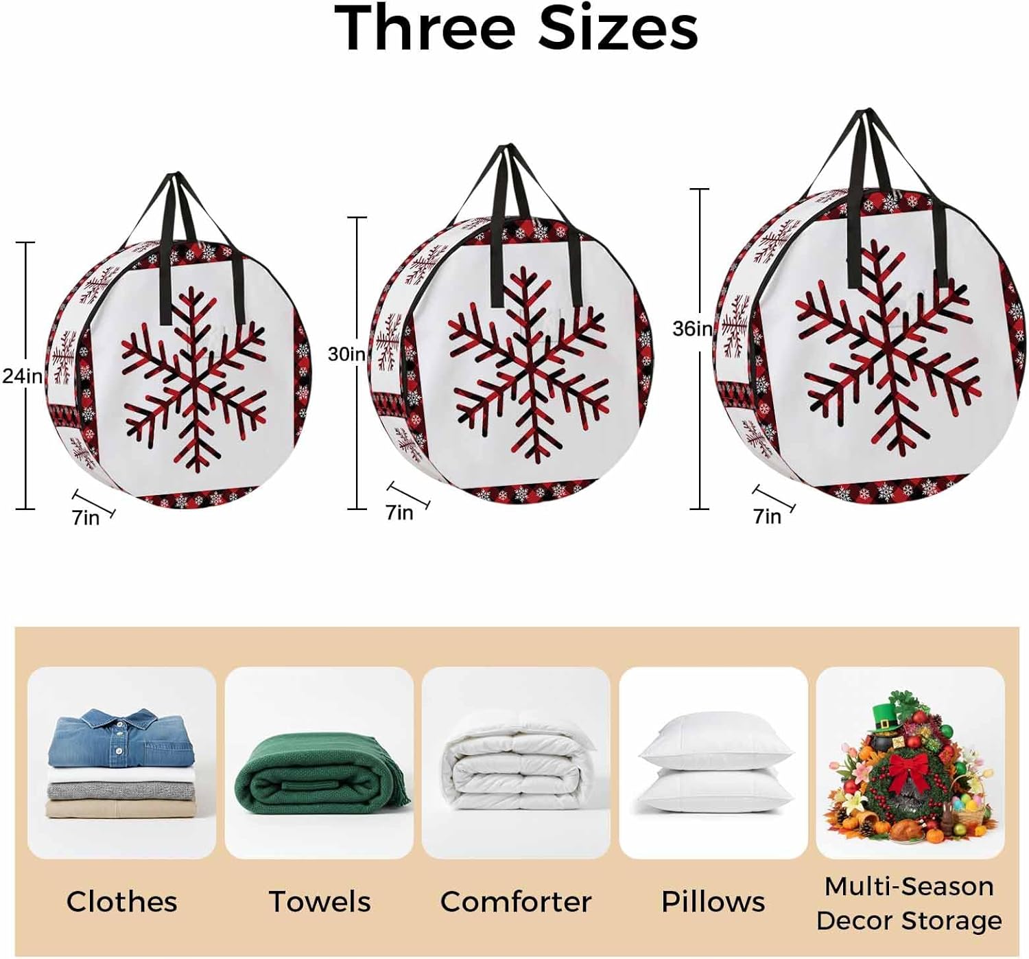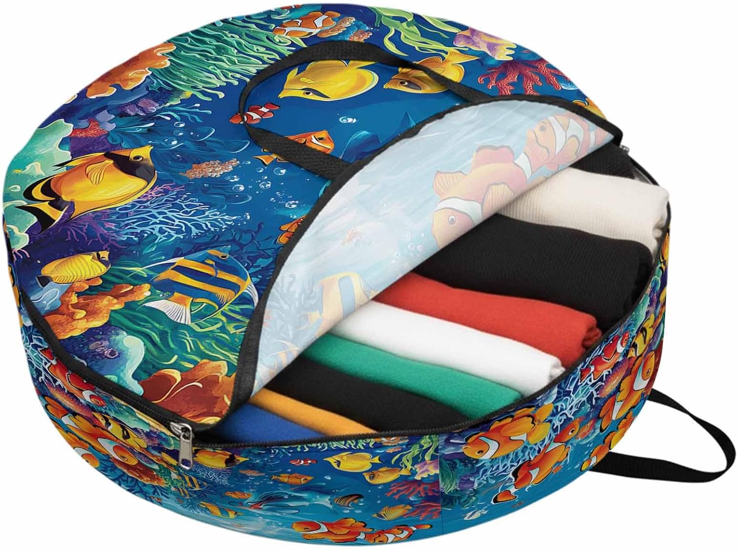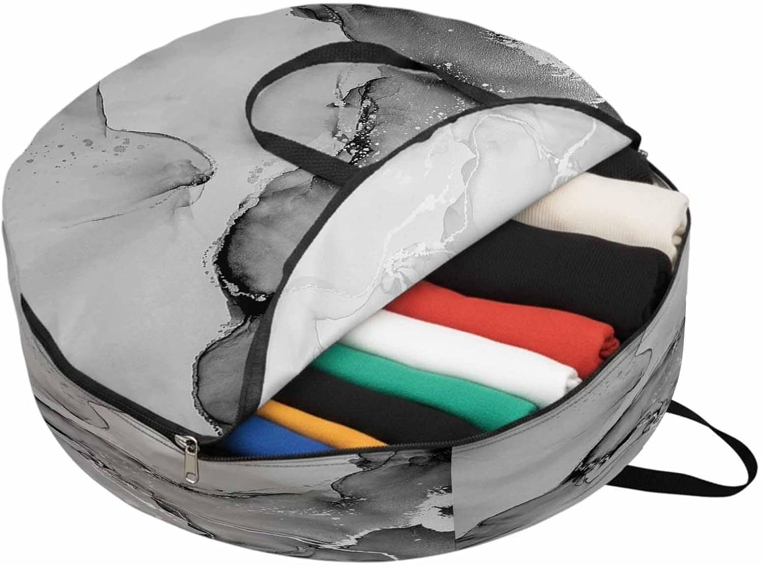 Reclaim Your Closet Space with the Round Storage Solution! Material: polyester Diameters: 24 inch, 30 inch, 36 inch Depth: 7 inches Package Includes: Round Storage Bag One Bag, Endless Possibilities: Whether you are swapping out your summer wardrobe, moving into a new dorm, or packing away holiday decorations, this bag has you covered. The circular design is uniquely suited for: Bedding: Comforters, quilts, sheet sets, and oversized pillows. Clothing: Winter coats, sweaters, and bulky ski gear. Home Decor: Holiday wreaths, garlands, and floral arrangements. Outdoor Gear: Camping blankets, sleeping bags, and beach towels. Dual Zippers: The high quality double zipper design allows the closet organizer to open wide from both sides, making it effortless to load and unload even the bulkiest comforters or wreaths. Reinforced Handles: Sturdy, reinforced handles are securely stitched to provide extra strength and a comfortable grip when carrying heavy loads or pulling the bag from under a bed. Clear Label Pocket: A transparent built-in label holder allows you to quickly identify the contents of each bag without ever having to unzip it, keeping your storage perfectly organized.